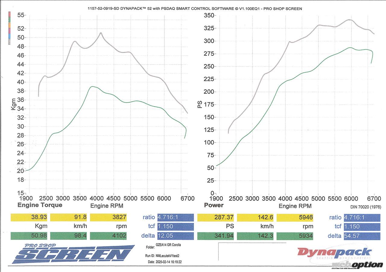現状のセッティングでは、ライトチューンながら341.94ps&50.96kgm(純正時の計測結果:287.37ps&38.93kgm)を記録。今後キャタライザーやエアクリーナーを変更すれば、パワーは350psオーバーも十分に射程圏内だという。