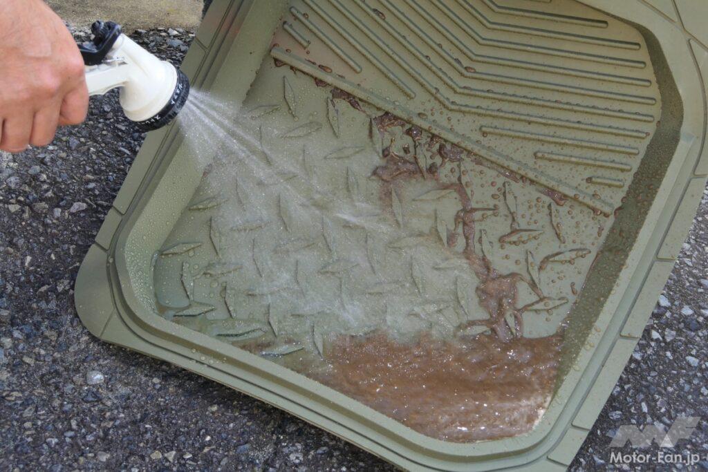錦産業の『オフロードマット』を敷けばそんな惨状を見ずに済む。なにせ雪や雨水、泥汚れを寄せ付けないPVC製。しかも堤防のような凹凸が付いた形状となっており、汚れたブーツや靴を置いても車内への流出を防ぐことができる。