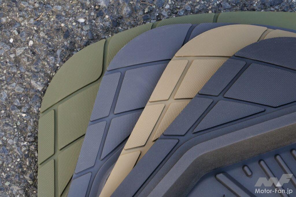 タフギアテイストに溢れるデザインも選ぶべき理由に挙げられる。カラーはブラックやダークブルーのほか、ミニタリー色のベージュやオリーブを用意。武骨なデザインなので、オフロードマットを敷くだけで、ワイルドな雰囲気を演出できるのだ。