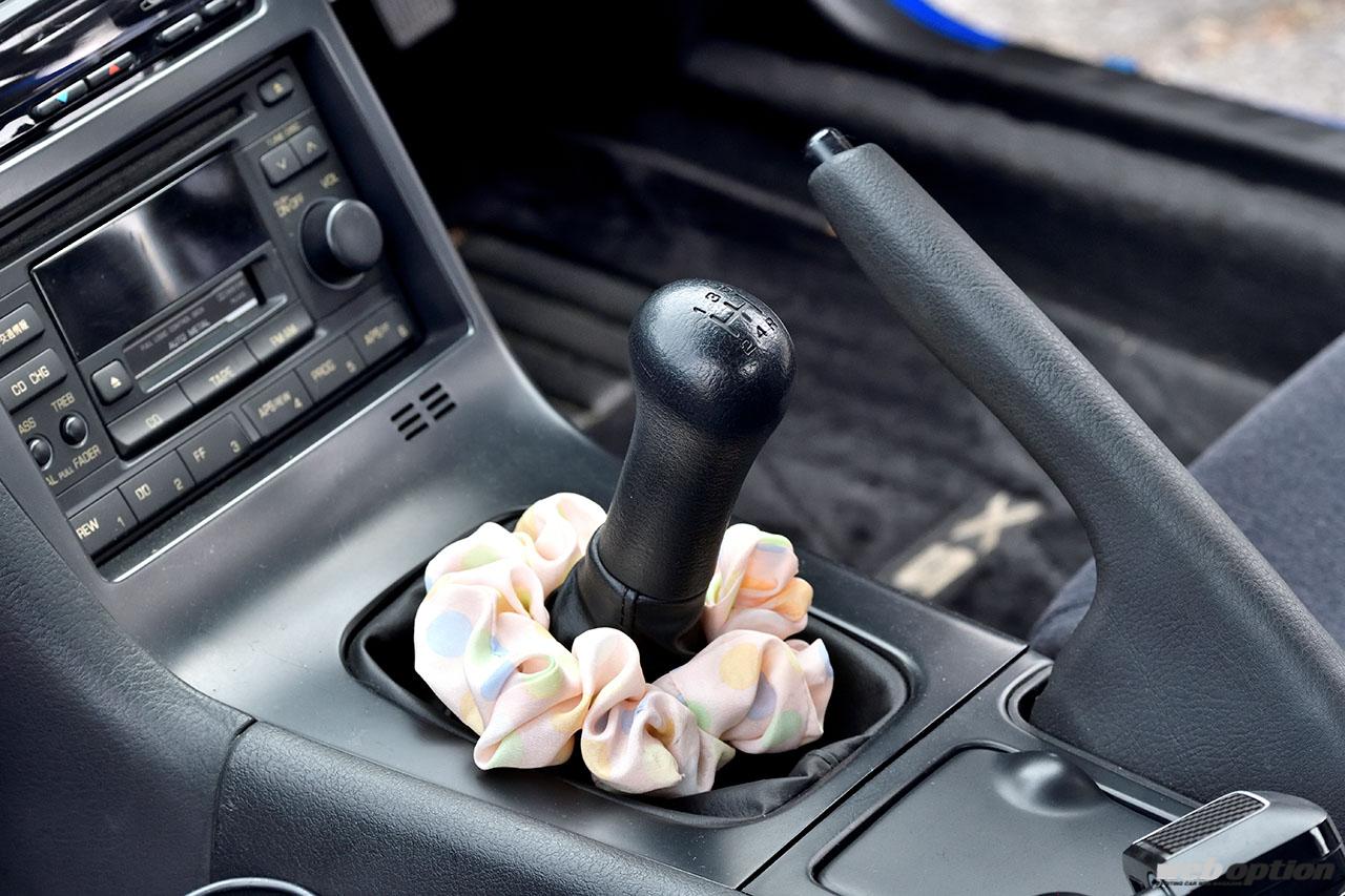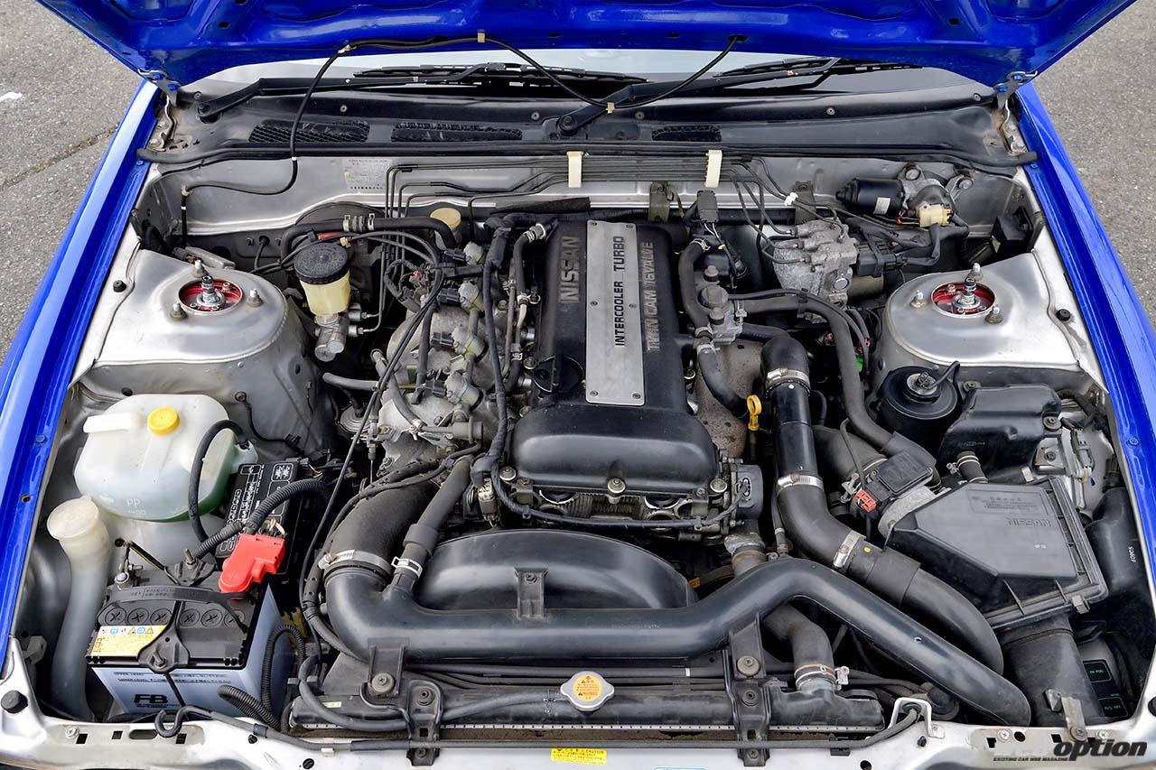原作ではSR20DETエンジンはノーマルで、追加インジェクターとマフラー交換にECU書き換え仕様と紹介されていた真子号に対し、ゆうこすさんのマシンは完全なノーマル。エンジンルーム内にはシルバーだったベース車の名残が。