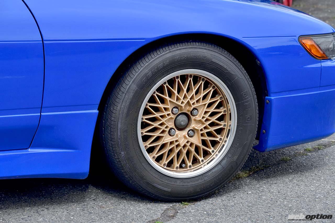 原作での記載はないが、BBSスーパーRSが定説となっている真子号のホイール。ゆうこすさんが装着するのはSSRだが、ブルーボディにゴールドメッシュがお気に入り。車高調はブリッツ製を装着している。