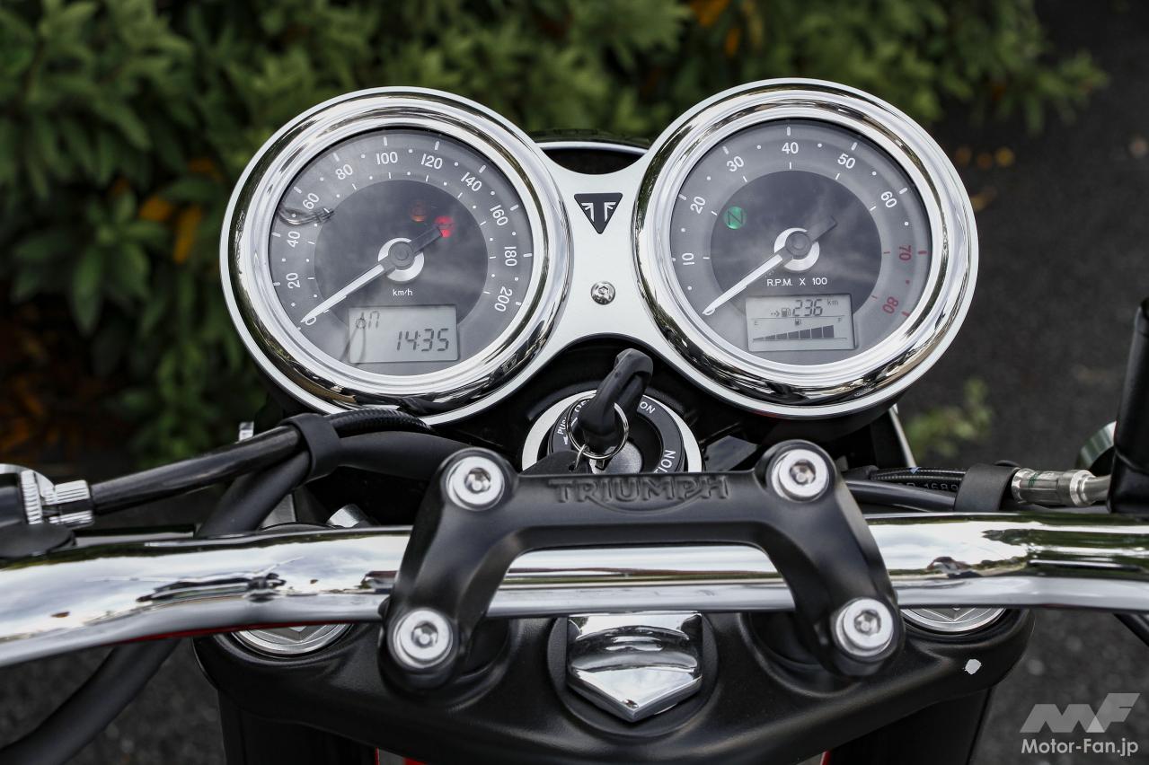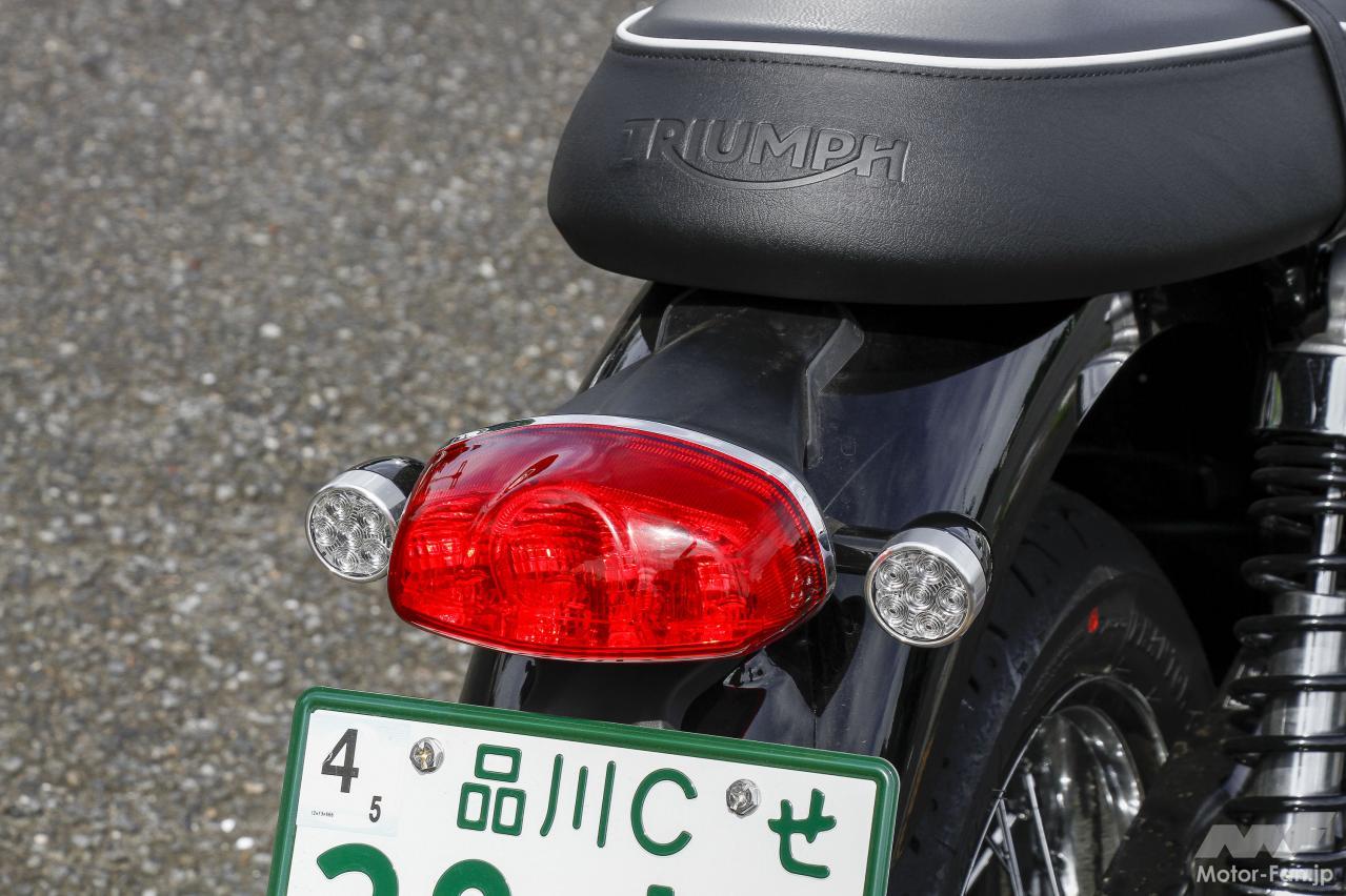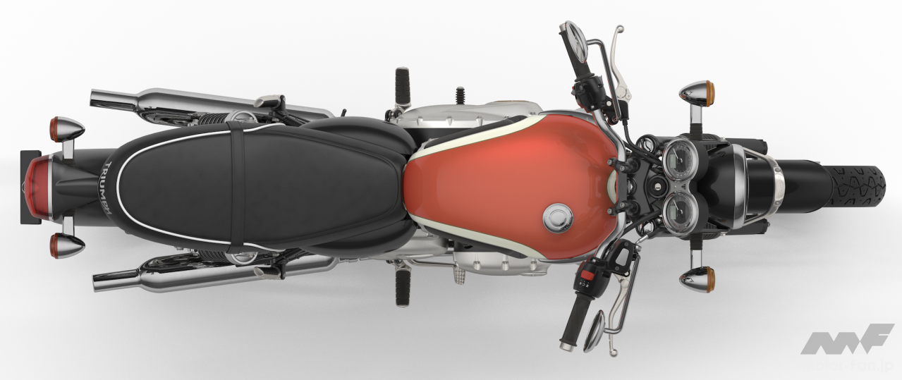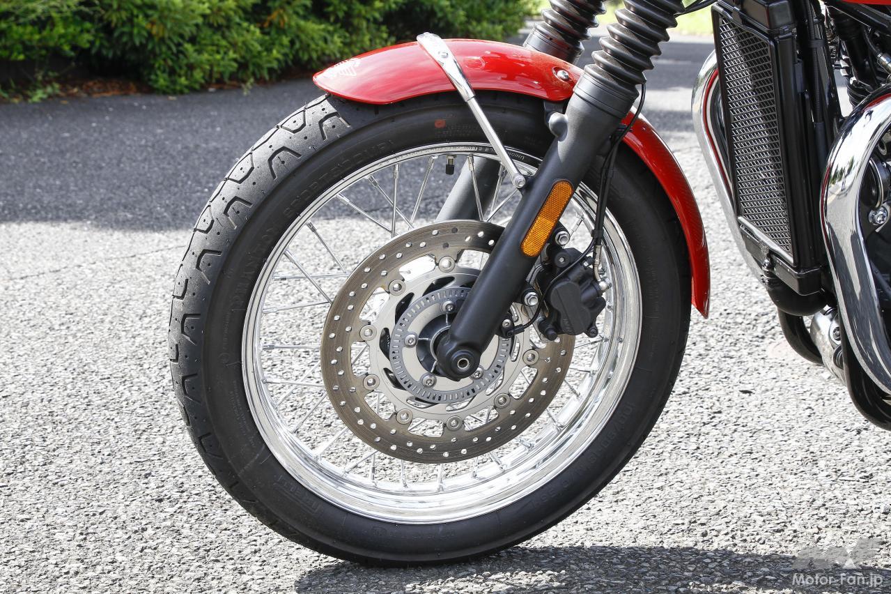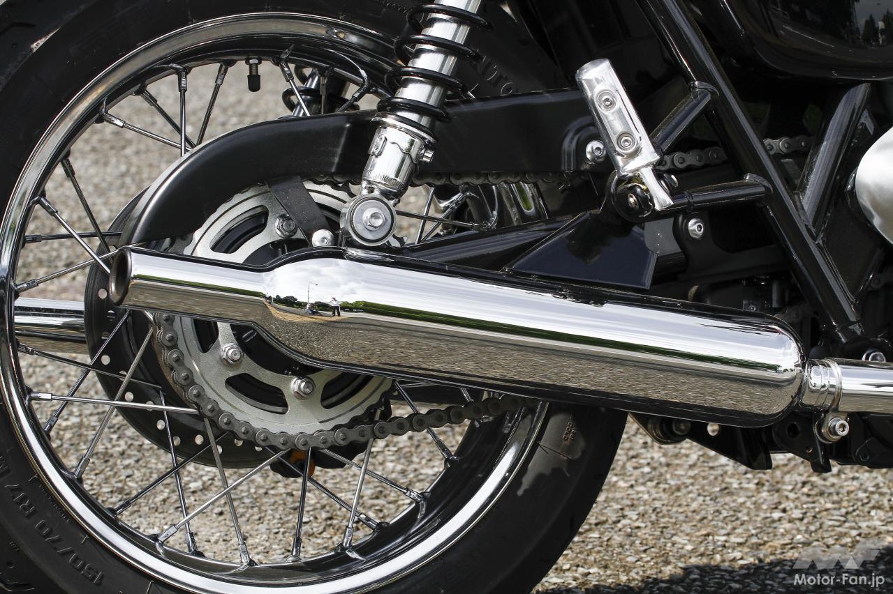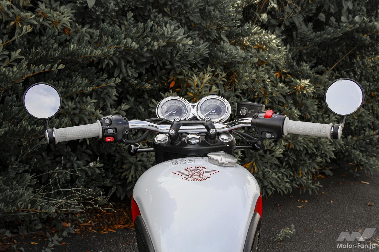 もちろん厳密に言えばディスクブレーキの装備や、セルモーター、そして水冷エンジンは最新の電子制御・燃料噴射式が搭載されており、クランクも位相された270 度タイプ。最新のテクノロジー満載で全てが別物。それでも、往年のレジェンドモデルとして、一時代を築いた歴史的名車の復刻モデルとしの価値に独自の魅力が見出せる。