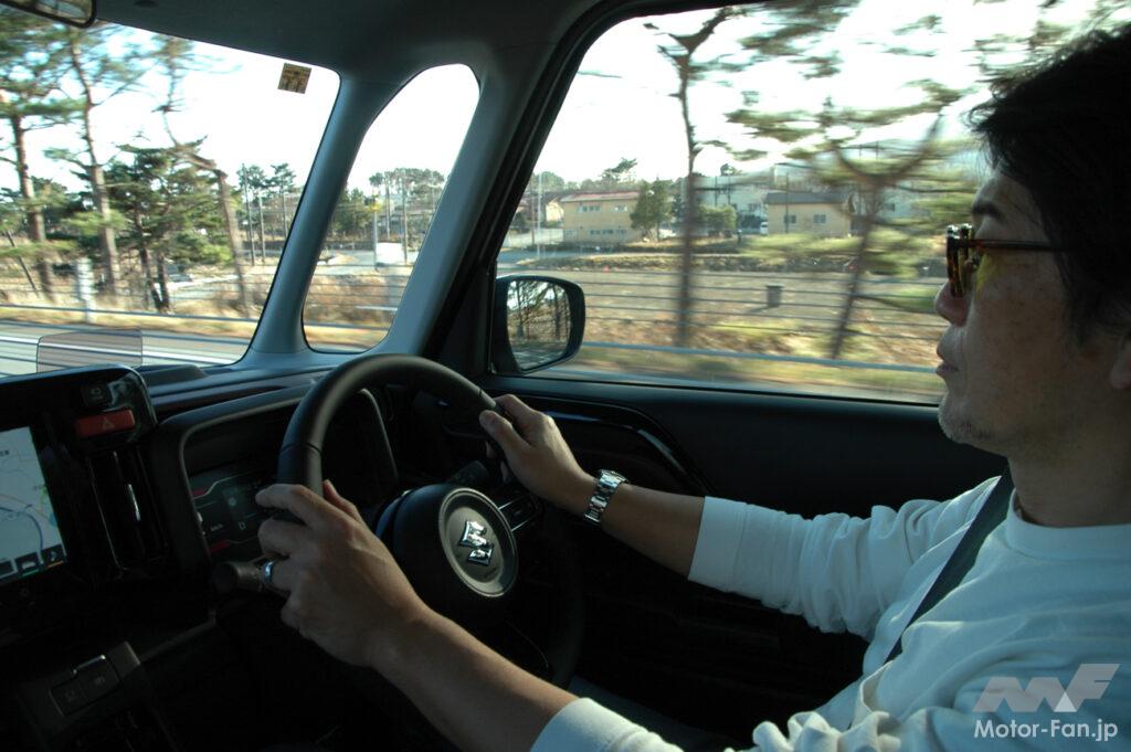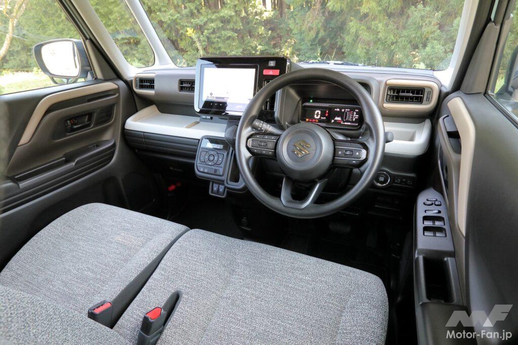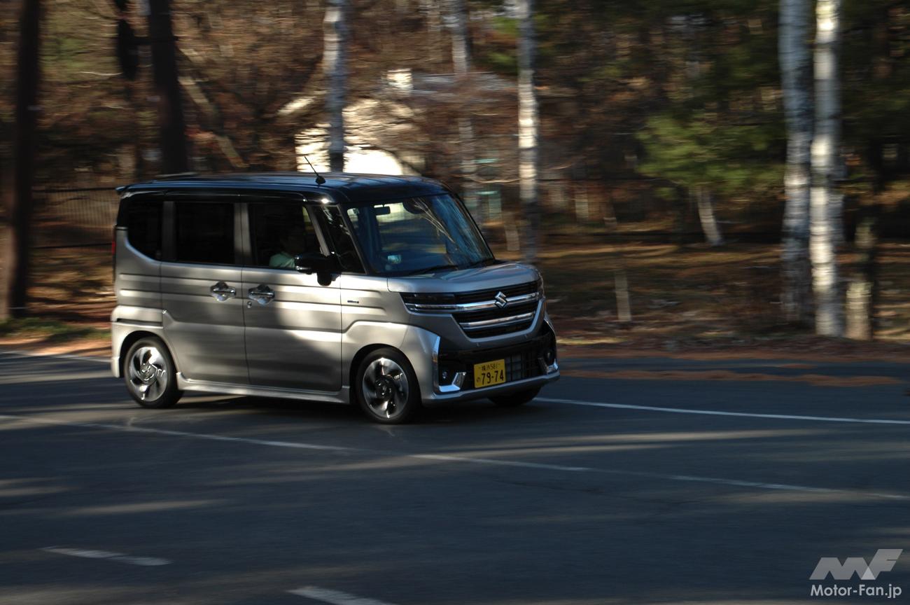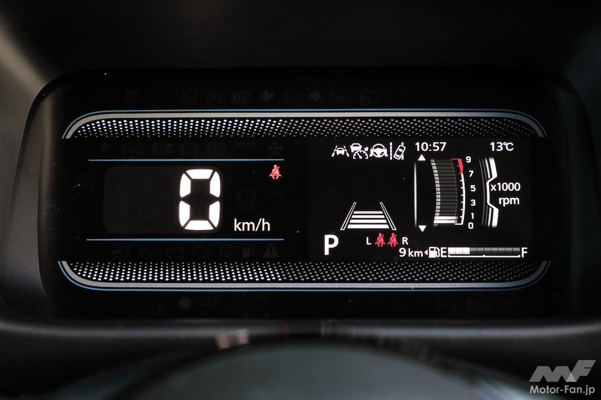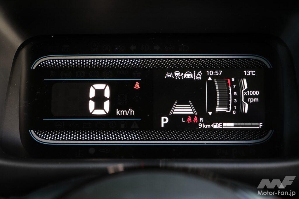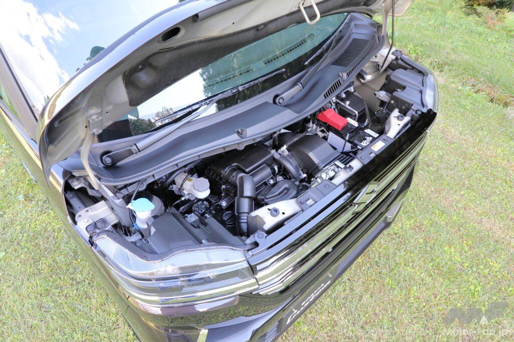 パワーユニットは、64PS/98Nm(10.0kgm)を発揮する660ccの直列3気筒ターボがベースのマイルドハイブリッド。モーターの出力は3.1PS/50Nm(5.1kgm)とNAエンジン用の2.6PS/40Nm(4.1kgm)より僅かに高められているが、モーターの存在感は当然マイルドハイブリッドの域は出ておらず、黒子的にその走りをアシストしている。