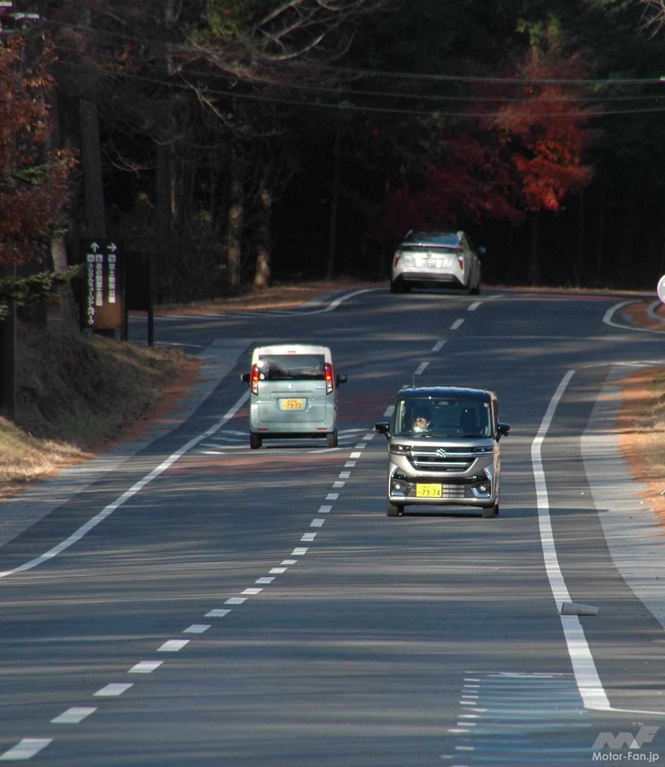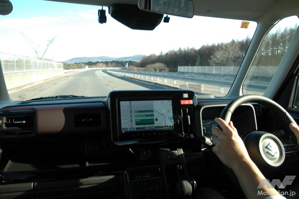 カメラ位置が高いスーパーハイトワゴンでもADASセンサーがぶれないから、カーブでは修正舵が入らず挙動が安定するのだ。その切り始めこそまだレスポンスが遅くて唐突な所もあるが、自動運転ではなく操舵アシストだと考えれば、かなり頑張っているし今後の洗練に期待が持てる。