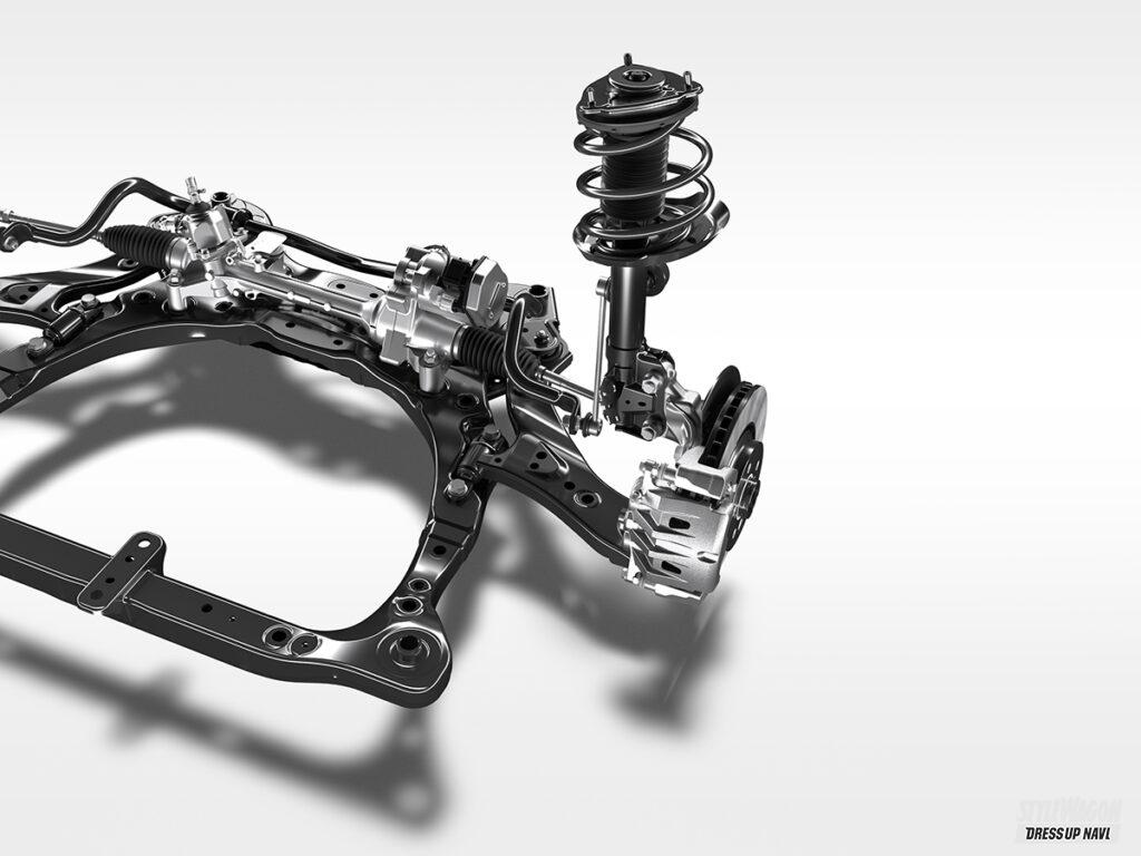セダンのようにシャープで流麗なフォルムをしながら、大径タイヤの装着でリフトアップを行い、SUVのような雰囲気も獲得。最低地上高は145mmと、高くもなければ低くもない絶妙な設定で、全高は1540mmに抑えられている。