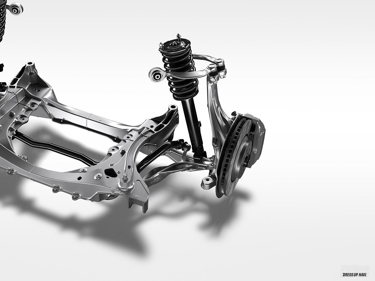 セダンのようにシャープで流麗なフォルムをしながら、大径タイヤの装着でリフトアップを行い、SUVのような雰囲気も獲得。最低地上高は145mmと、高くもなければ低くもない絶妙な設定で、全高は1540mmに抑えられている。