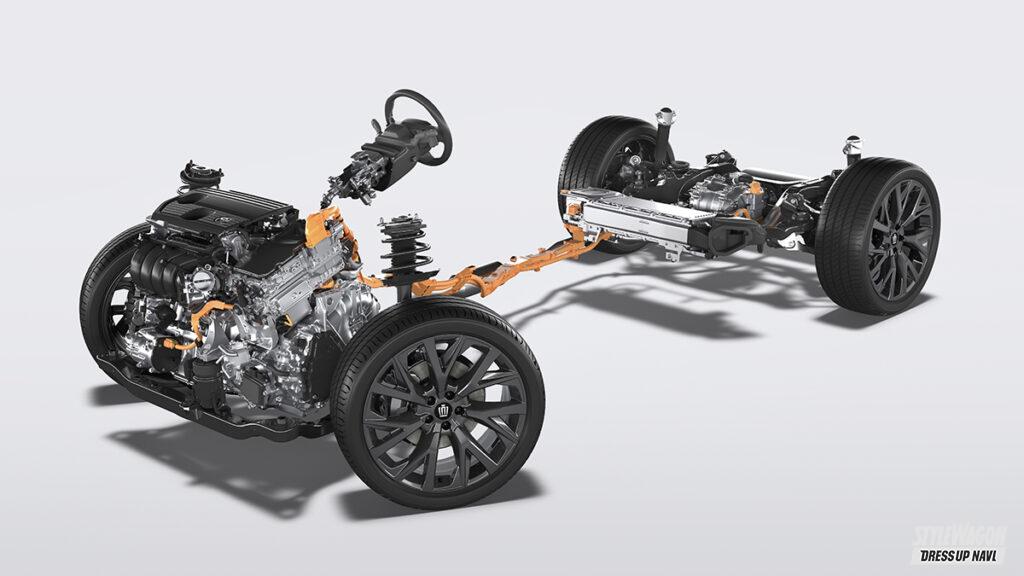 走行面では後輪操舵のDRSと減衰力調整機構のAVSに荷物をたくさん積むことのあるエステート独自の制御を取り入れ、長距離でも快適に移動できる乗り心地を獲得した。