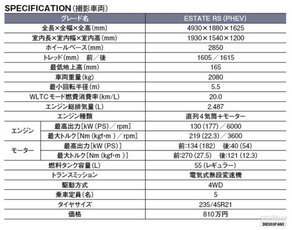 走行面では後輪操舵のDRSと減衰力調整機構のAVSに荷物をたくさん積むことのあるエステート独自の制御を取り入れ、長距離でも快適に移動できる乗り心地を獲得した。
