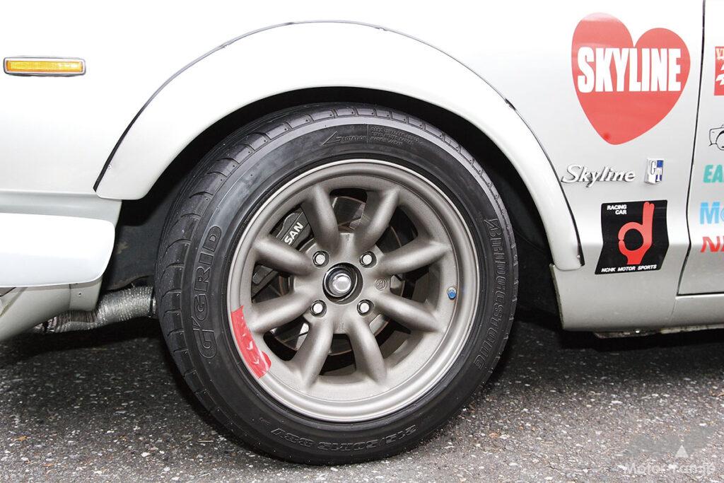これまで2ドアを2台、4ドアを2台乗りこのハコスカで4台目だというハコスカが大好きなオーナーさん。SKYLINE.O.C.の代表でもあり、メンバーの良きアニキ的な存在でもある。チューニングはほとんど自分達で行ない、拘りぬいた仕上がりで、フェンダー横の青バッジも拘りの部分だ。現在のエンジンはライジング製だ。
