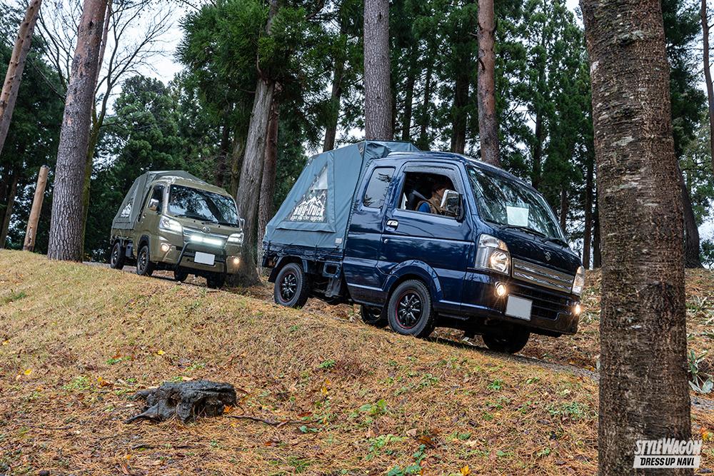 最初にバグトラを手に入れたのは旦那様のつとむさん。奥さんのえみこさんは、そんな旦那様のバグトラが「うらやましすぎて」追いかけるようにバグトラオーナーになったという。ちなみに、バグトラとは荷台にまとったテント風の幌が特長の軽トラック。本来は幌なので使い方は自由なのだが、つとむさん&えみこさん夫妻はそれを車中泊用に使用しているというわけ。なお、バグトラックにはキャンパープロとエキストラが存在する。また車種専用に開発されているため、自分の軽トラックに合ったものを選ぶと良いだろう。
