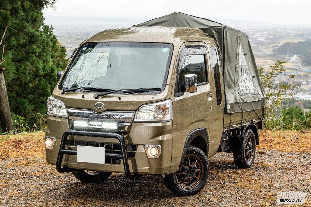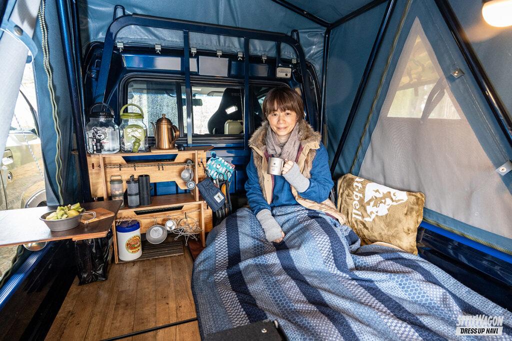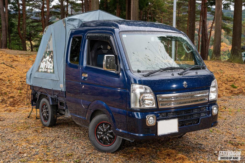 ほぼほぼストック状態のスーパーキャリイにバグトラのテントキットを搭載したえみこさんですが、実は5速のマニュアルミッション仕様をスーパーへの買い出しにも愛用しており地元では密かな著名人!? ちょっとした空き時間を見繕っては地元の山々へドライブへ出かけ、その場でデイキャンプを楽しむのが専らの息抜きなのだとか。最近はカスタムへの興味も湧いてきており、オーバーフェンダーでカッコつけちゃおうか計画中でーす。