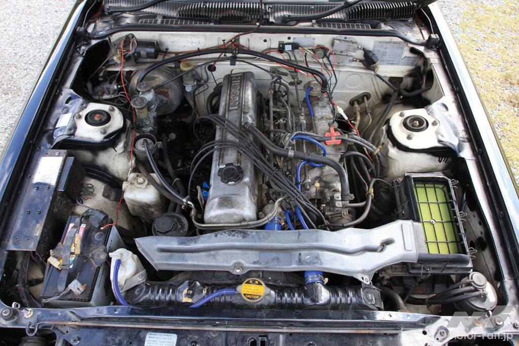 インジェクション仕様のL20E。エアクリーナーがHKS製の高効率タイプに交換されている程度で、ほぼオリジナルのコンディション。青いホースがちらりと見えるように、オーナーはエンジンルームを青くしようと計画中。