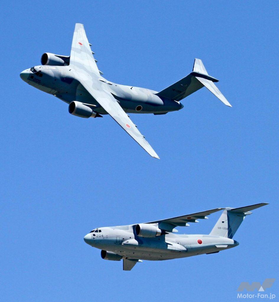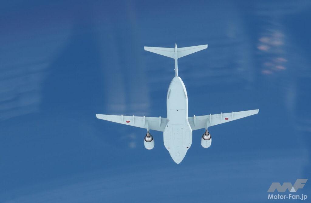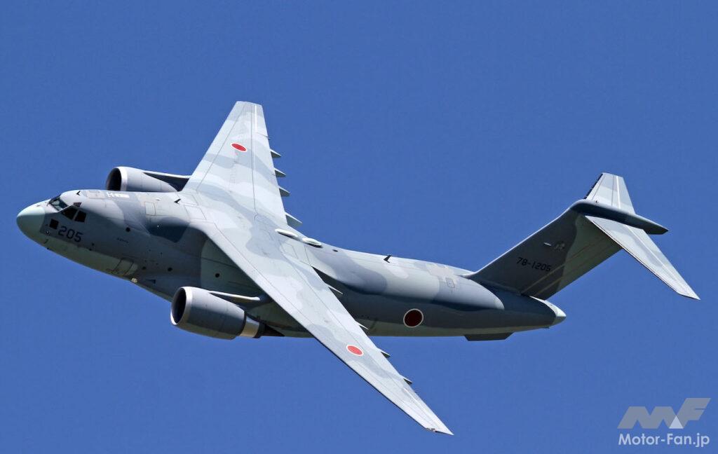 C-2のサイズは、全長43.9m、全幅44.4m、全高14.2m。大柄だが操縦性能は優れているという。前型のC-1と比較すれば大型な機体だが、これは現在の視点ではC-1がそもそも小型に過ぎたからかもしれなくて、見た目の印象の話だ。航空機としてのデザインや空力特性は現代版なわけで操縦性や運動性、搭載機器の性能などが優れているのは当然だ。