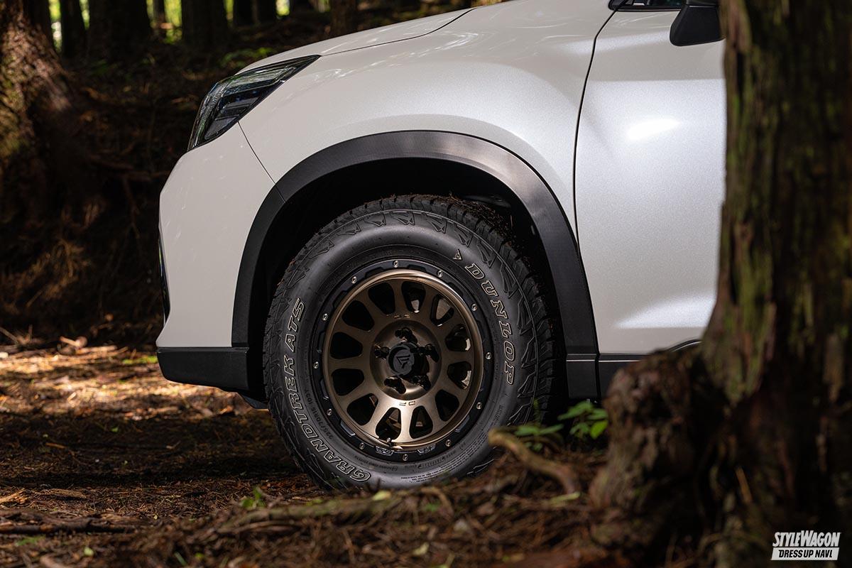 さらにビードロックリング風のリムデザインがオフロードなムードをさらに高めてくれる。