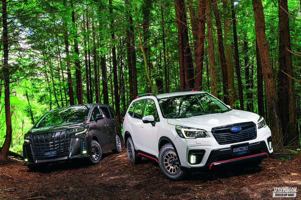 デリカD:5やジムニーといった人気オフロード車だけでなく、アルファードやハイエースなど「外し」の車種もオススメサイズをラインアップ。