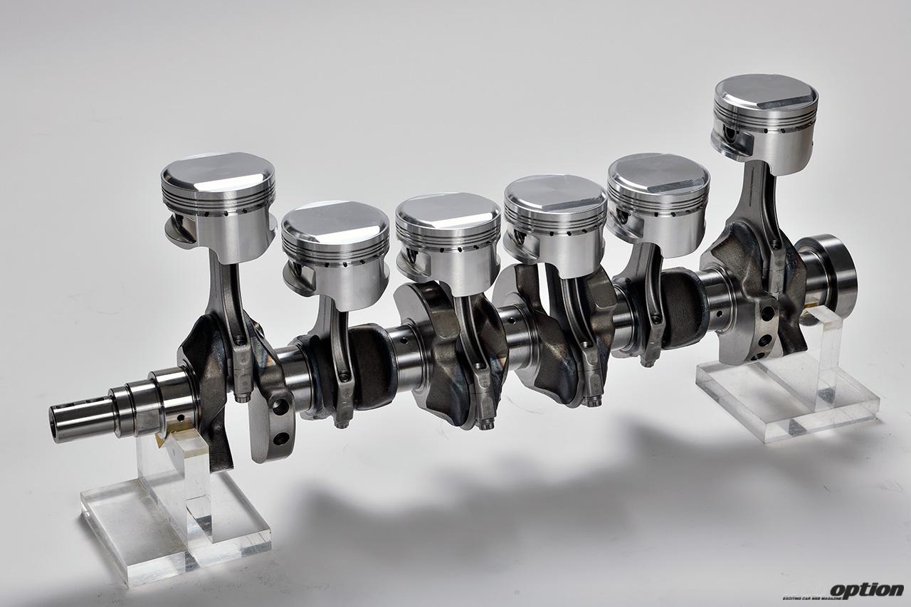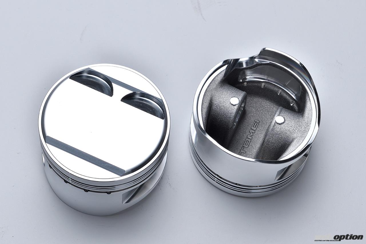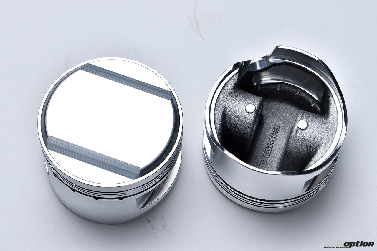 全域で鋭いレスポンスとどこまでも回るようなビッグトルクが体感できるRB26用の2.8Lストローカーキット。大風量タービンを組み合せれば、さらなるパワーアップも実現可能だ。鍛造ピストンとH断面コンロッド、鍛造8カウンタークランクで構成され、ピストンは86.2φ、86.5φ、87φ、87.5φを設定。それぞれリセス付きとリセス無しタイプが用意される。コンロッドベアリング合わせ済みのセットもラインナップする。