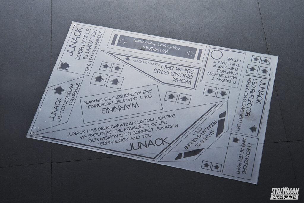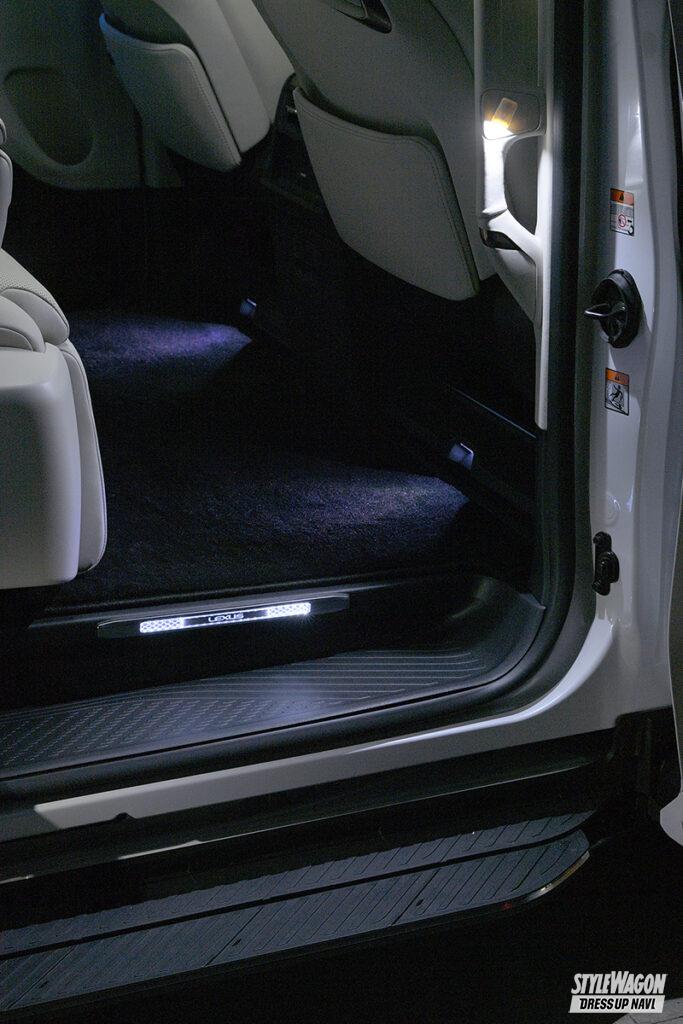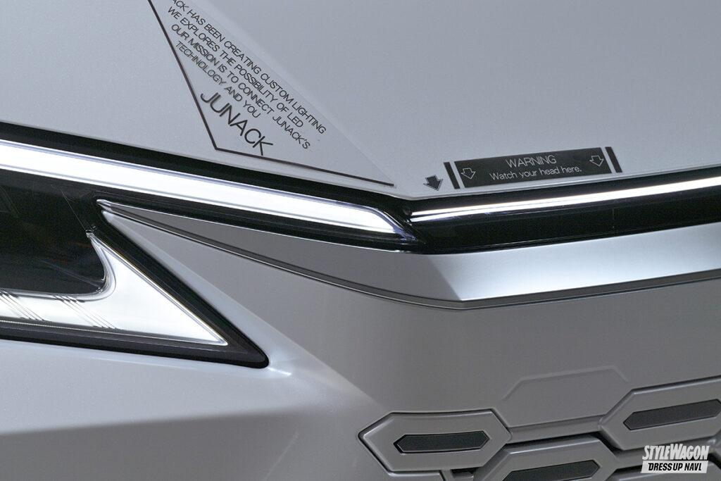 ライティングカスタムの老舗ジュナックは、40系と同時にLMにもアイテムを展開中。発売前からLM乗りをザワつかせていた、グリルイルミネーションがいよいよ発売開始! LMのアイデンティティでもある、ヘッドライトのラインをこのアイテムで横一文字につなげることに成功。マスクの雰囲気がガラリと変わるエポックなパーツだ。また、マルチカラーに対応したLEDインテリアランプなど、オシャレで便利なライティングが揃っている。さらに、40系で人気爆発中の車名エンブレムが光るトランスワードも開発が開始され、ジュナックのLM攻勢が止まらない! レクサスに強く国産にこだわるジュナックならではのアイテム群に要注目だ。