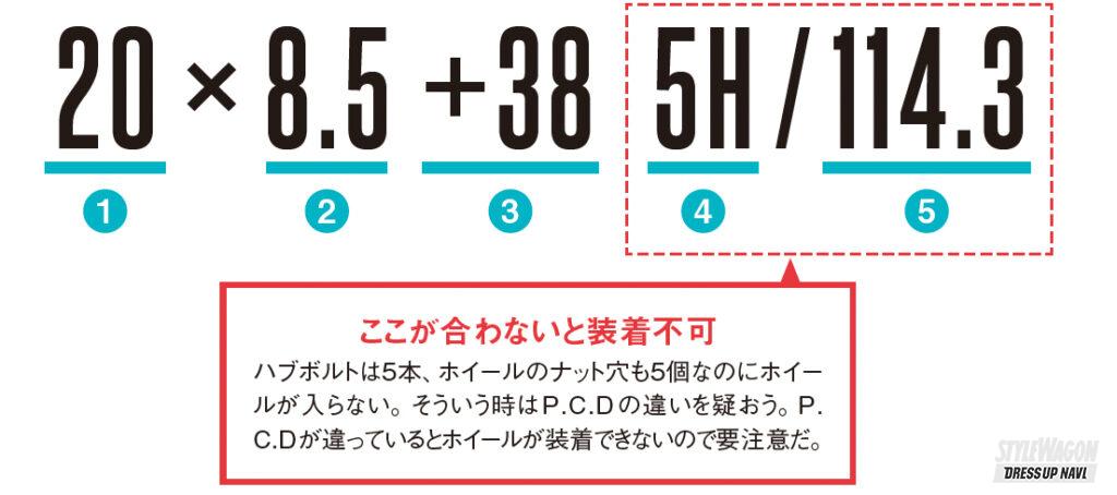 | ❺P.C.D | ボルト穴を結んでできた円の直径。セダンは120、それ以外3モデルは114.3。 |