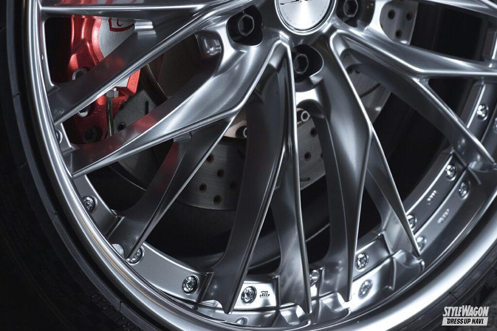 デザインは見れば見るほどこだわりの強さが見えてくる。まず全体像は、シャープなストレートスポークとメッシュデザインが織りなすダブルフェイス。ディスク表面に加工を施さないことで、極限までシャープなイメージを高めている。スポークの流れるような立体造形にも注目。高低差の大きな形状を採用することで、フェイスに強いコントラストを生み出し、奥行き感があり、深みのあるホイールを実現している。