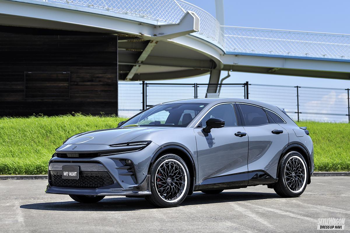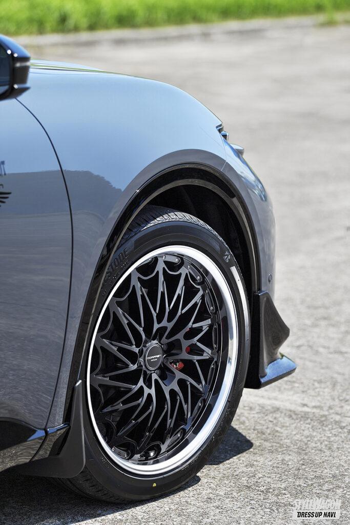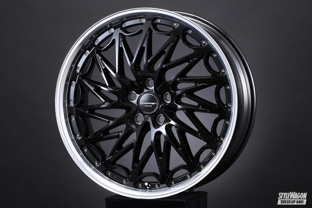 TLM02が属するドルフレン エクスクルーシブは、トピーのフラッグシップ「ドルフレン」のさらに上を行くプレミアムなシリーズ。レクサス車やトヨタの上級車など、ターゲットを絞っているのが特徴で、このTLM02は、クラウンもターゲットにあたる。デザインは、躍動感溢れるメッシュの造形に加え、リムを強調する設計となっている点がポイント。リムの奥行きを最大限キープし、さらにリム部には塗分けやダミーピアスを加えることで、1ピース構造ながらマルチピースを彷彿させる設計を採用。上級車に相応しい要素を存分に取り入れることで、クラウンの風格に劣らない上品な足元を演出してくれる。