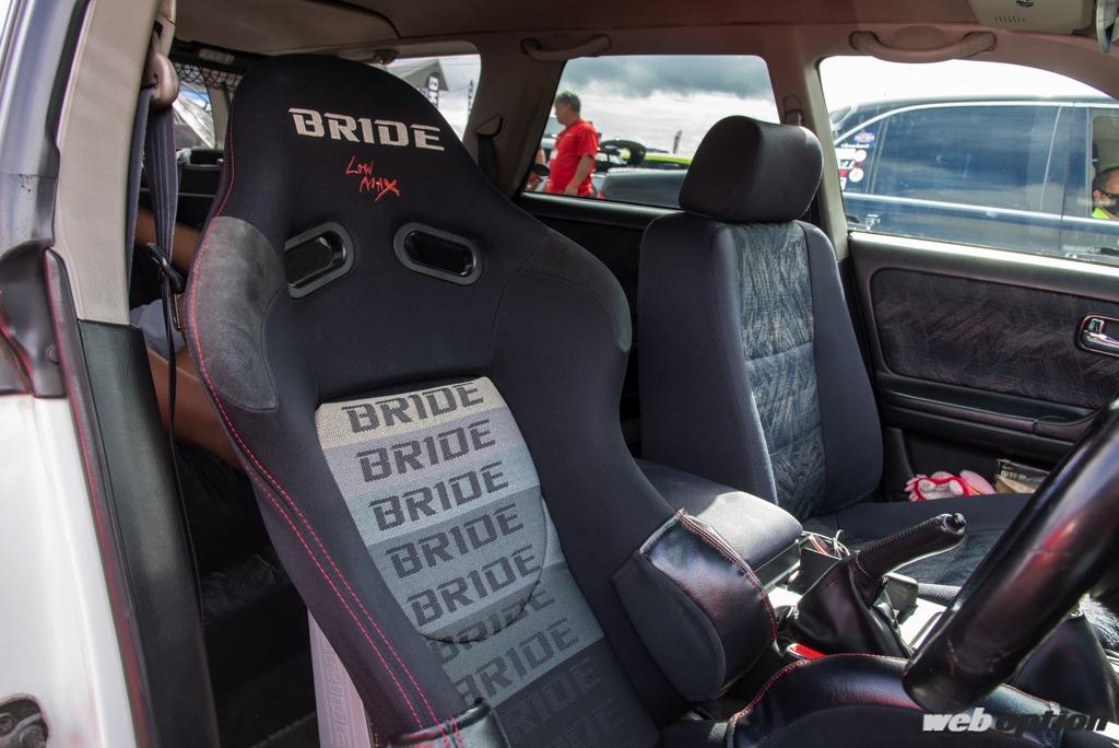 ガッチガチにロールケージを組んでいた前愛車とは異なり、快適性を損なわないパーツセレクトが光る室内。ステアリングはMOMO(350φ)で、シートはリクライニング機能を持ちつつも抜群のホールド性を発揮するブリッドのストラディアをインストールする。