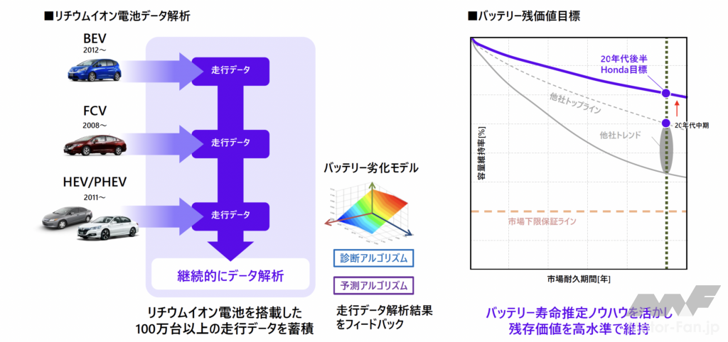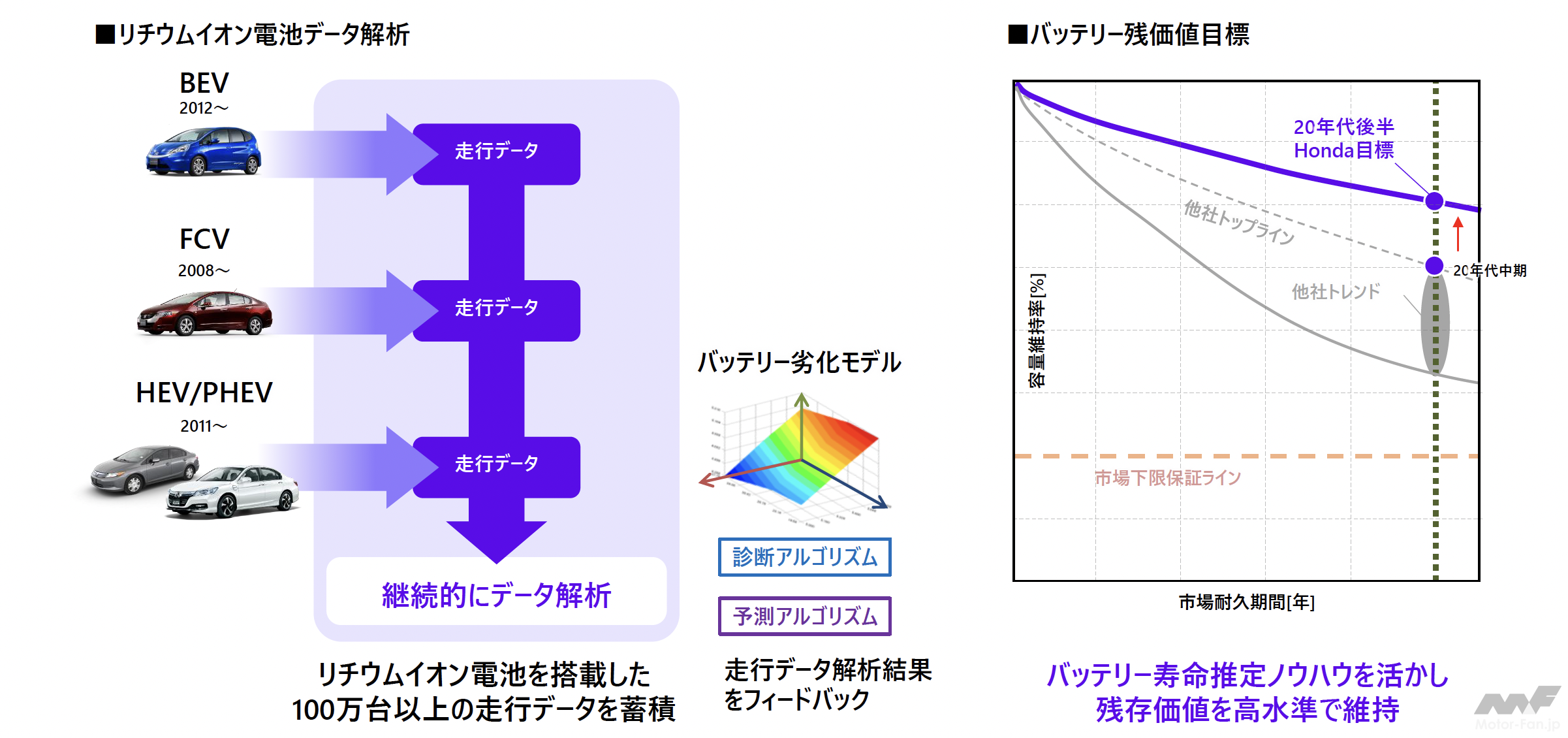 充電時間については、2020年代後半に投入する0シリーズではSOC15%~80%の急速充電時間を10~15分程度に短縮する。また、使用開始から10年後のバッテリー劣化率10%以下を目指す。バッテリーの劣化率が低ければBEVの残存価値を高水準に維持できるわけだ。
