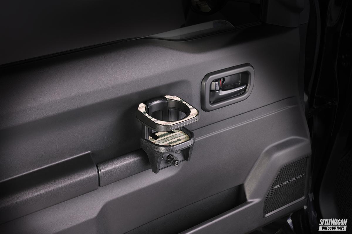 2019年に初期モデルが発売され、コレまで累計20万個近い販売実績をほこるカーメイトのジムニー専用ドリンクホルダー。コレまでもデザインやカラーリングのアップデートを重ねてきたが、新たにオルテガ柄とウッド調、アウトドアスタイルとの親和性を高める2種類が登場した。