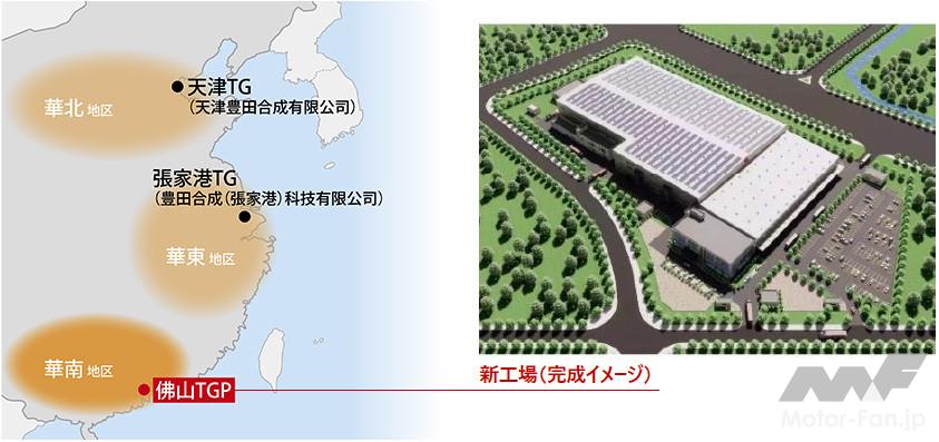 新工場は、豊田合成のグループ会社である豊田合成(佛山)汽車部品有限公司の分工場として設立し、2023年夏頃から生産を開始予定としている。中国での安全規制強化により需要が伸びるエアバッグの販売を拡大すると共に、華南における自動車生産の拡大に対応する。