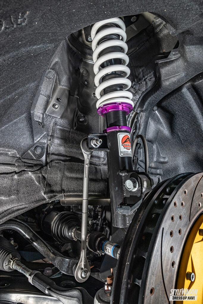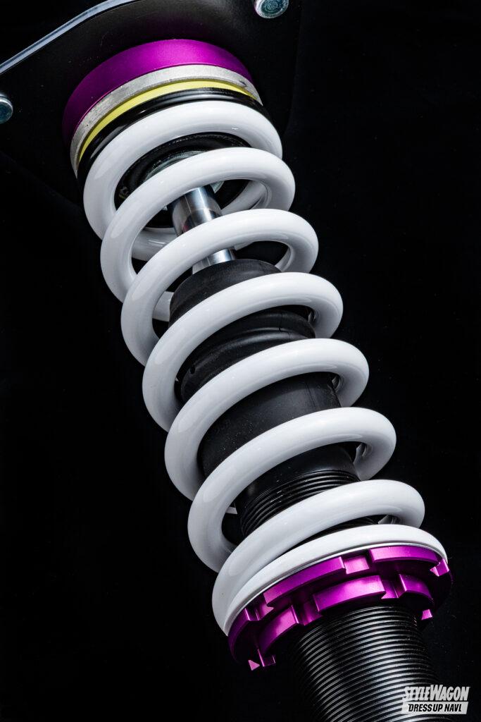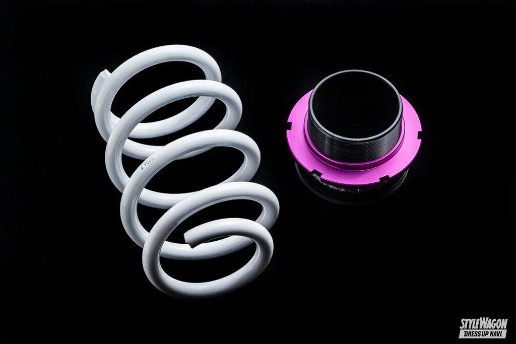 ミリ単位で車高を落とすことができるから、シビアなツライチセッティングにもってこい。また乗り心地も純正よりしっかり感があり、減衰力の調整で街乗りからワインディングまでシーンに合ったドライビングを楽しむことができる。そして人気のエアサスと比べると価格もお手頃。このようにコストパフォーマンスに優れている車高調は、ビギナーからハイエンドユーザーまで幅広く支持されている。