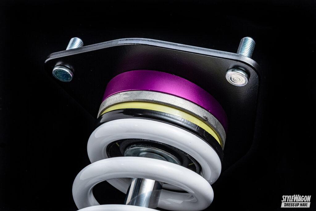 ファイナルコネクションも長きに渡り、アルヴェルをはじめ様々なクルマの車高調を開発する老舗メーカー。ユーザーが車高調に求めるスペックをしっかり取り入れながら、部品の高騰が騒がれている昨今でも手の届きやすい価格帯を維持していることが人気の要因。同社の主力モデルであるステルスブラックツインも例に漏れず、あえて価格から先にお伝えすると12万1000円。ミニバン用車高調としては非常にリーズナブルだが、値段以上の満足度が得られるハイスペック。全長調整式で減衰力25段調整機構付き、フロントには異音の抑制や乗り心地の向上に効果的なスラストベアリングを導入。さらに新開発の複筒式ショックを採用してしなやかな乗り心地を実現。まさに至れり尽くせりな逸品だ。