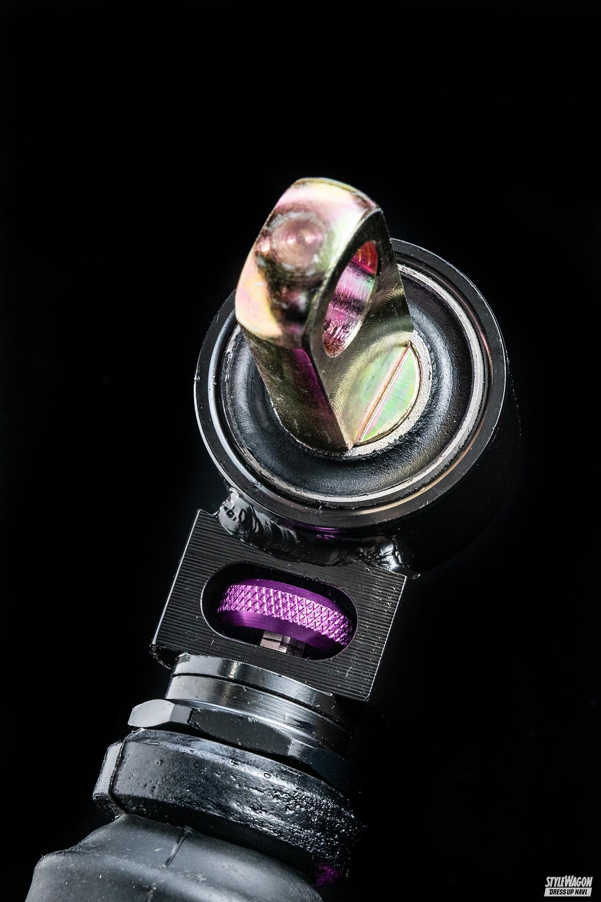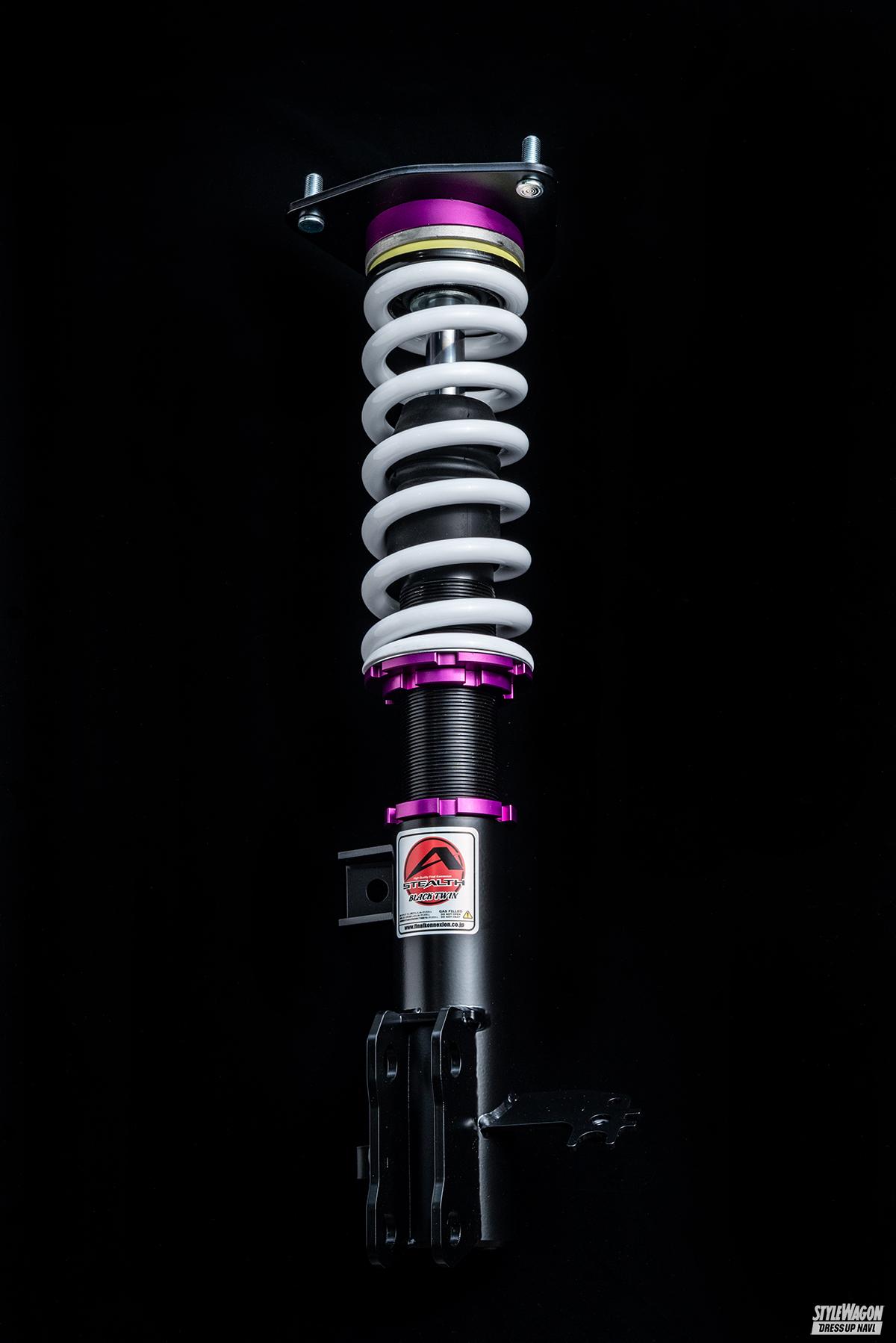 ファイナルコネクションも長きに渡り、アルヴェルをはじめ様々なクルマの車高調を開発する老舗メーカー。ユーザーが車高調に求めるスペックをしっかり取り入れながら、部品の高騰が騒がれている昨今でも手の届きやすい価格帯を維持していることが人気の要因。同社の主力モデルであるステルスブラックツインも例に漏れず、あえて価格から先にお伝えすると12万1000円。ミニバン用車高調としては非常にリーズナブルだが、値段以上の満足度が得られるハイスペック。全長調整式で減衰力25段調整機構付き、フロントには異音の抑制や乗り心地の向上に効果的なスラストベアリングを導入。さらに新開発の複筒式ショックを採用してしなやかな乗り心地を実現。まさに至れり尽くせりな逸品だ。