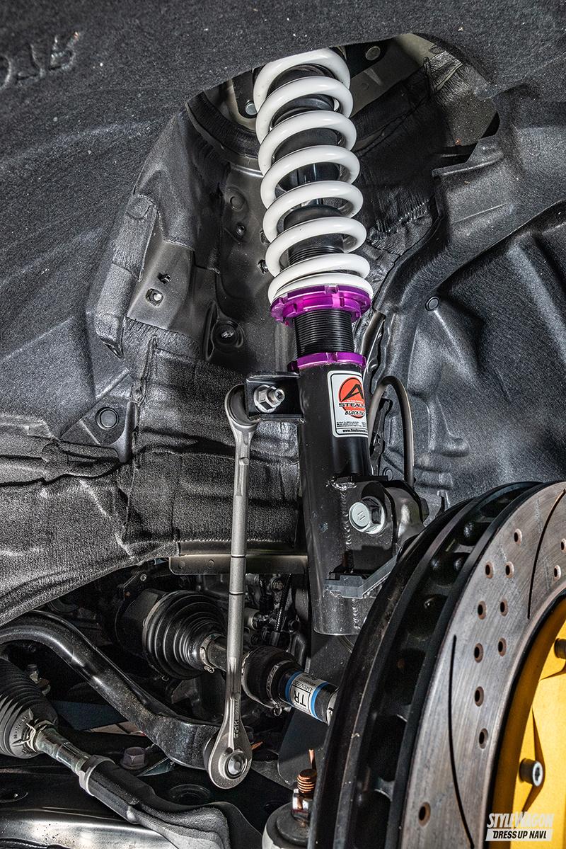 ミリ単位で車高を落とすことができるから、シビアなツライチセッティングにもってこい。また乗り心地も純正よりしっかり感があり、減衰力の調整で街乗りからワインディングまでシーンに合ったドライビングを楽しむことができる。そして人気のエアサスと比べると価格もお手頃。このようにコストパフォーマンスに優れている車高調は、ビギナーからハイエンドユーザーまで幅広く支持されている。