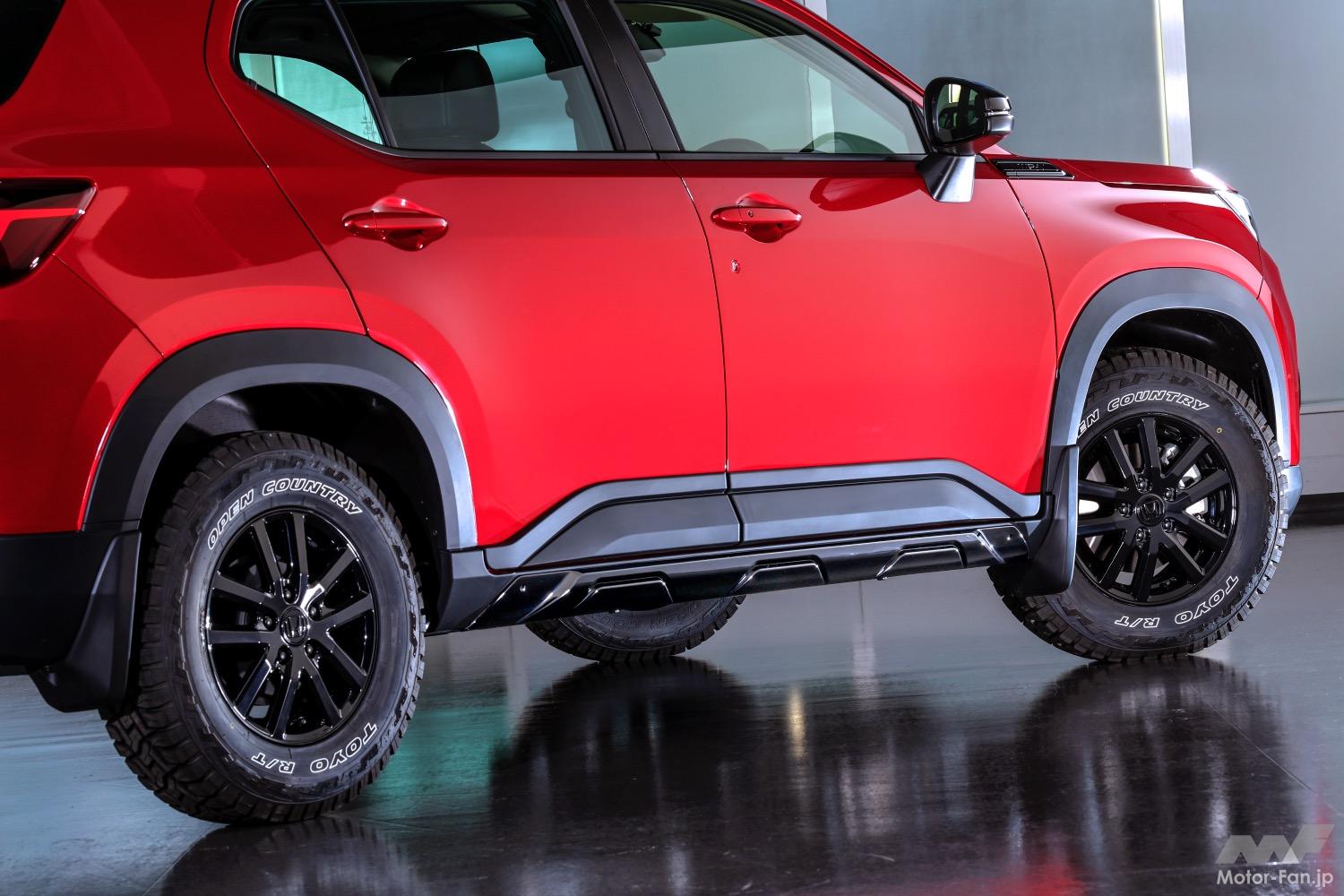 タマイズ。2023年12月に発表した WR-V 用純正アクセサリーのエクステリア提案である「タフスタイル 」を構成するカスタマイズパーツも活用しながらコーディネートしている。