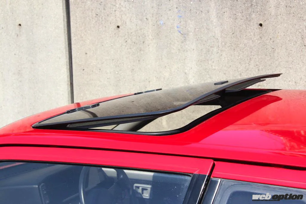 前期型のガラスルーフは手動脱着式でチルトアップも可能。室内側には直射日光を遮るためのサンシェードも設けられる。これが後期型ターボV/Rでは電動開閉式にバージョンアップする。