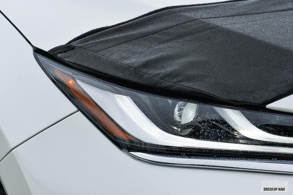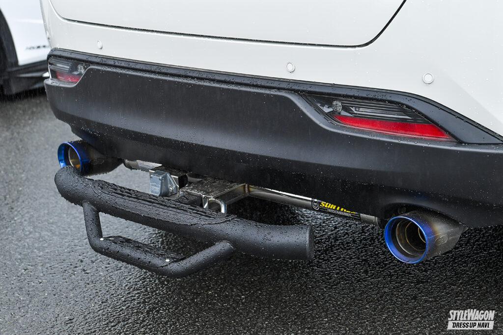 スタイリッシュなフォルムが特徴の80ハリアーは、北米では「ヴェンザ」の名で販売されている。そこでエンブレムやスカッフプレートなどヴェンザ純正パーツを取り寄せ、他とさり気なく違いを出す。イジりもUS寄りで、ノーズブラやUS純正テールランプなどパーツを厳選して理想の仕様に。この仕様にはメッキがしっくり来ないため、ベーシックなSグレードの樹脂パーツに交換した。
