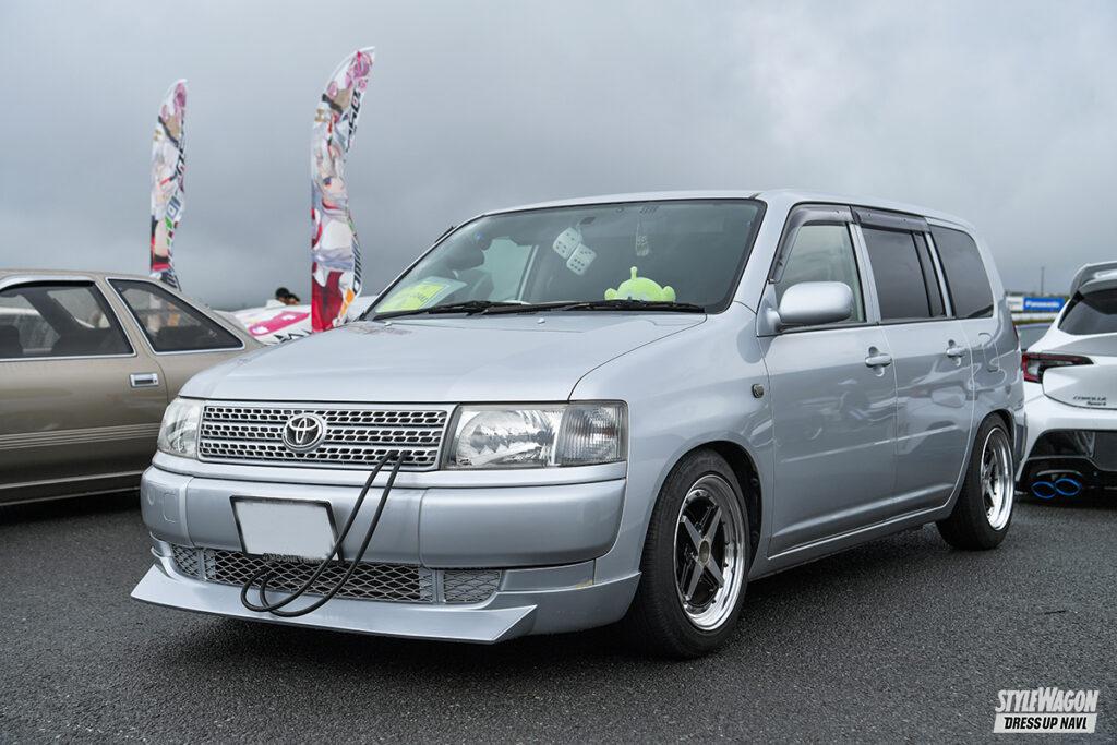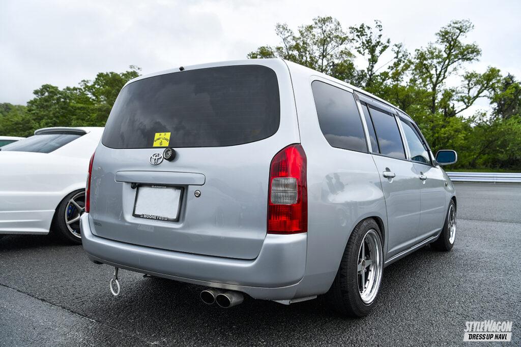 元バニング乗りのお父さんの影響でクルマが好きになったユウガさんは、19歳という若さ。年齢にしてはクラシカルな改造が好みのようで、プロボックスにヤンチャなテイストをプラス。フロントバンパーに追加したチンスポは汎用品ではなく、プロボックス専用だからフィッティングが高い。マイルドダンパーでさり気なくローダウンした足元には、ブラックポリッシュの4本スポークが懐かしさを感じるエクイップ01をセットした。