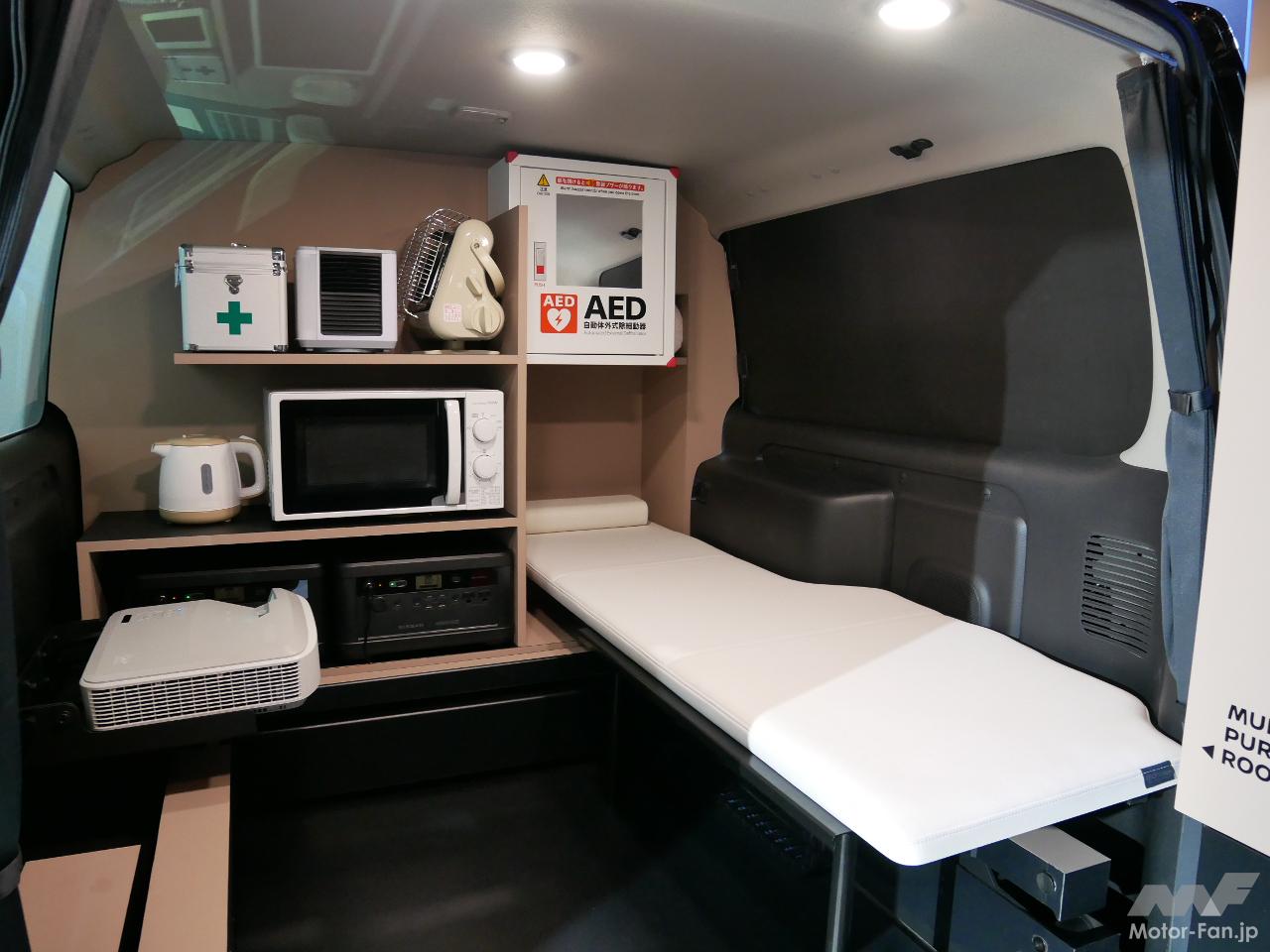 災害支援というのはオートサロン的な世界観とはちょっと違うかもしれないが、商用1BOXが持つパッケージングの可能性を体感するという意味でも、キャラバンのコンセプトカーは必見だ。