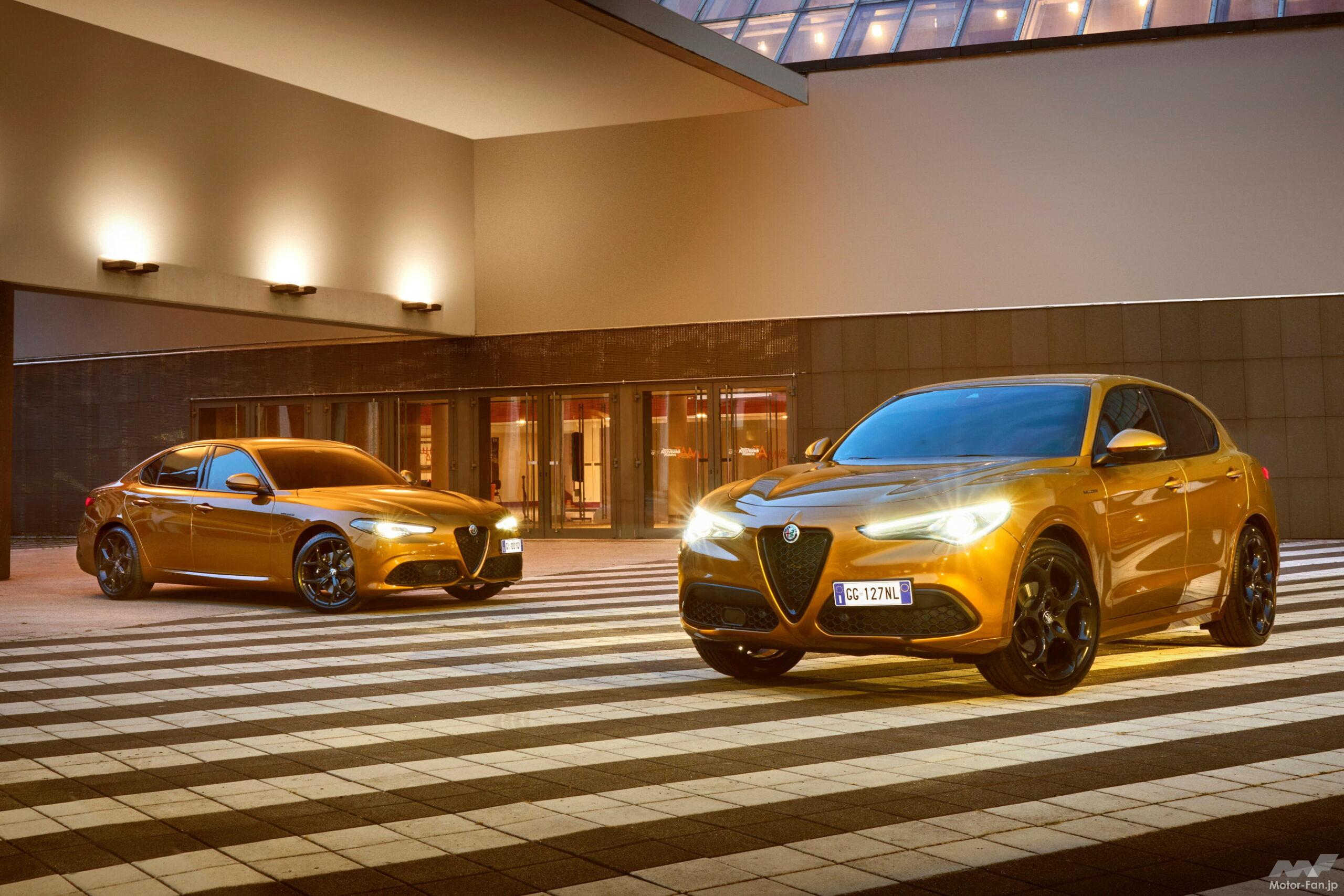 ベースとなるのはジュリア、ステルビオともにスポーツ・グレードの「ヴェローチェ」。エンジンは210hpを発生する2.2ℓターボディーゼル、あるいは280psの2.0ℓターボガソリンで、アルミ製シリンダーとカーボンファイバー製ドライブシャフトを備える。ステルヴィオにもラインナップされるがゆえにアルファロメオ独自の電子制御オンデマンド式スポーツ4WDシステム「Q4」が設定され、8速ATと組み合わされるが、280psの2.0ℓターボガソリンエンジン車には後輪駆動も設定。ボディ・カラーはかつての「GT1300 ジュニア」に設定されていたゴールド系の「リーパリ・オークル」が特別に用いられる。
