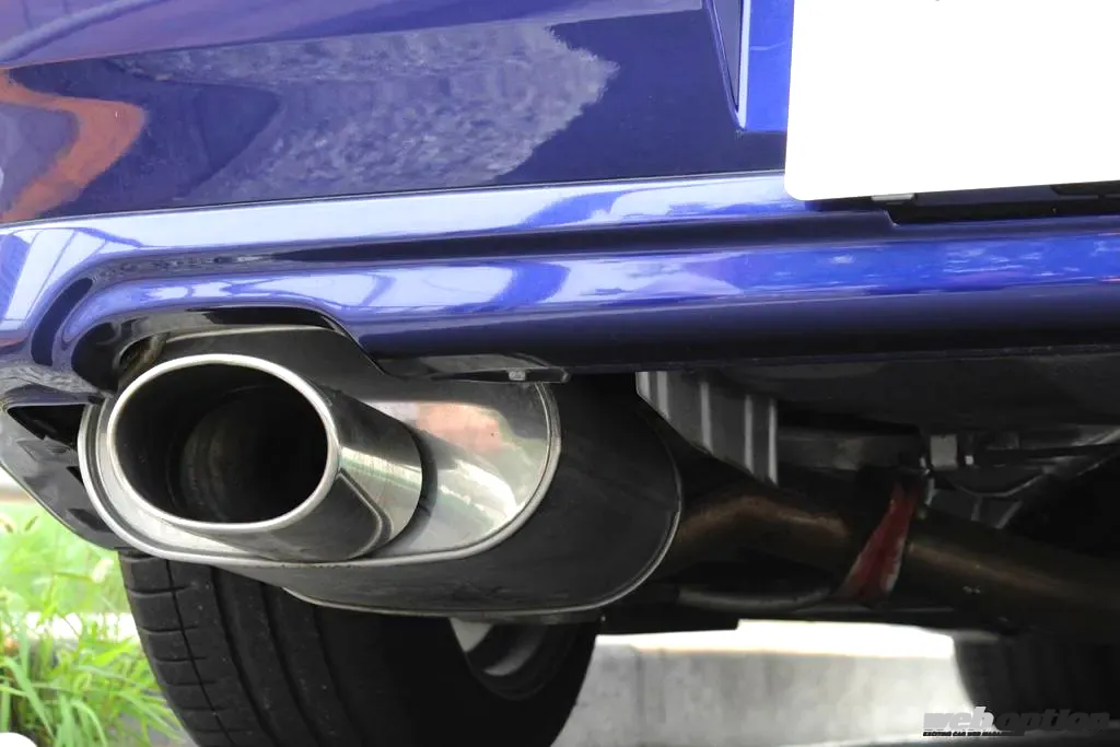 日産純正オプションとして用意されるV.S.S(バリアブルサウンドシステム)スポーツマフラーを装着。ステンレス製でオーバルテールを持ち、車内でのスイッチ操作で音質を切り替えられるのがポイントだ。