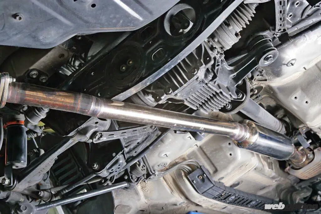 超低車高での日常ユースを可能にするため、車高調にはザ・スティーズ『ドロップキット』を投入。スプリングはフロント25kg/mm、リヤ20kg/mmというハイレート仕様で、自由長の短いスプリングで姿勢を保つ。ケース長もフロントは90mmしかなかったりするのだが、リヤはある程度動かして乗り心地を確保するため120mmに設定。