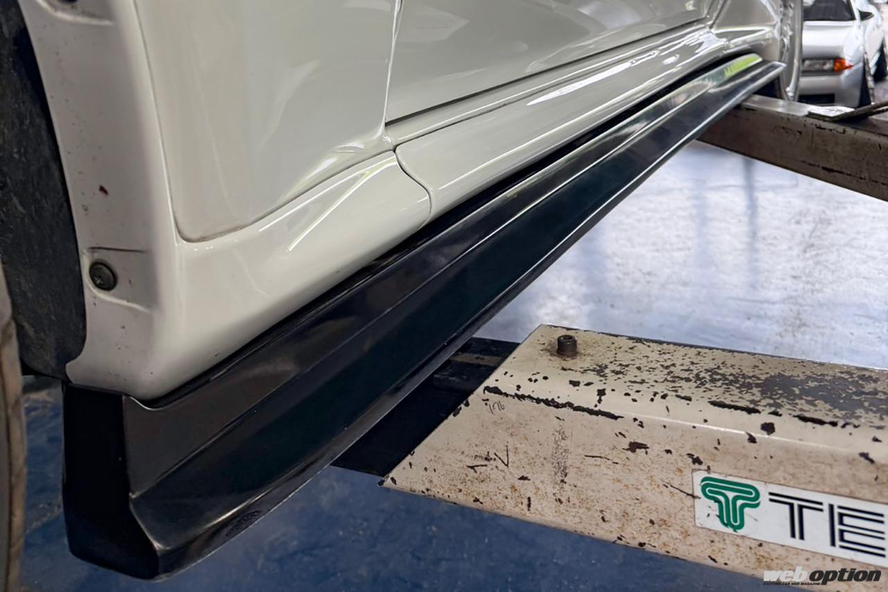 ウイングフラップはBNR32の純正リヤウイングに装着する専用設計。一方、サイドアンダーディフューザーは純正サイドステップおよびサイドシルプロテクターとのマッチングを重視して設計されており、いずれも純正ボディラインを崩すことなく、控えめながらも洗練された印象をプラスしてくれる。