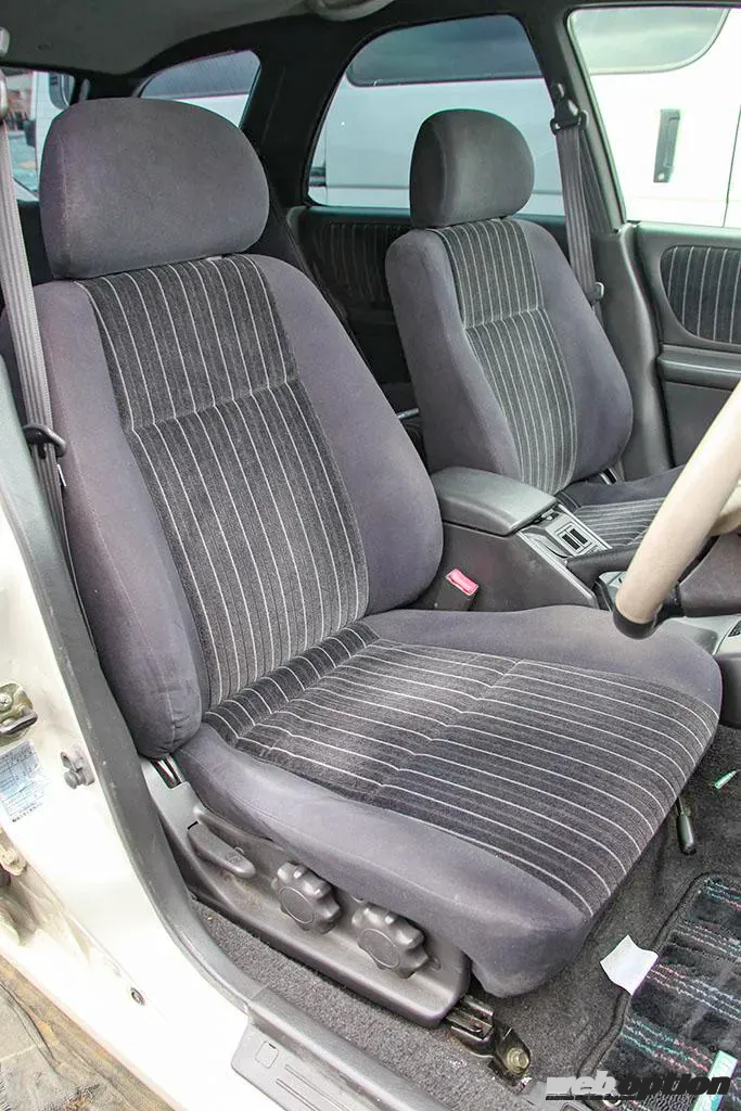 シートやドアトリムの表皮には肌触りの良いモケットを採用。ともにグレーのストライプがデザインされる。