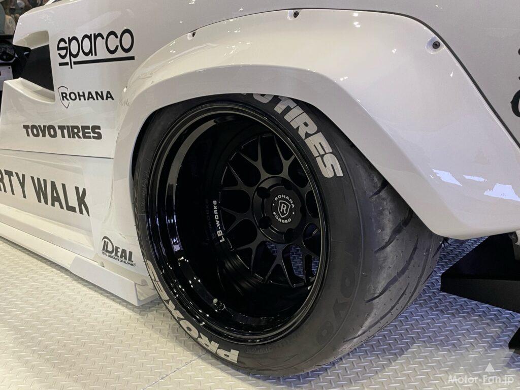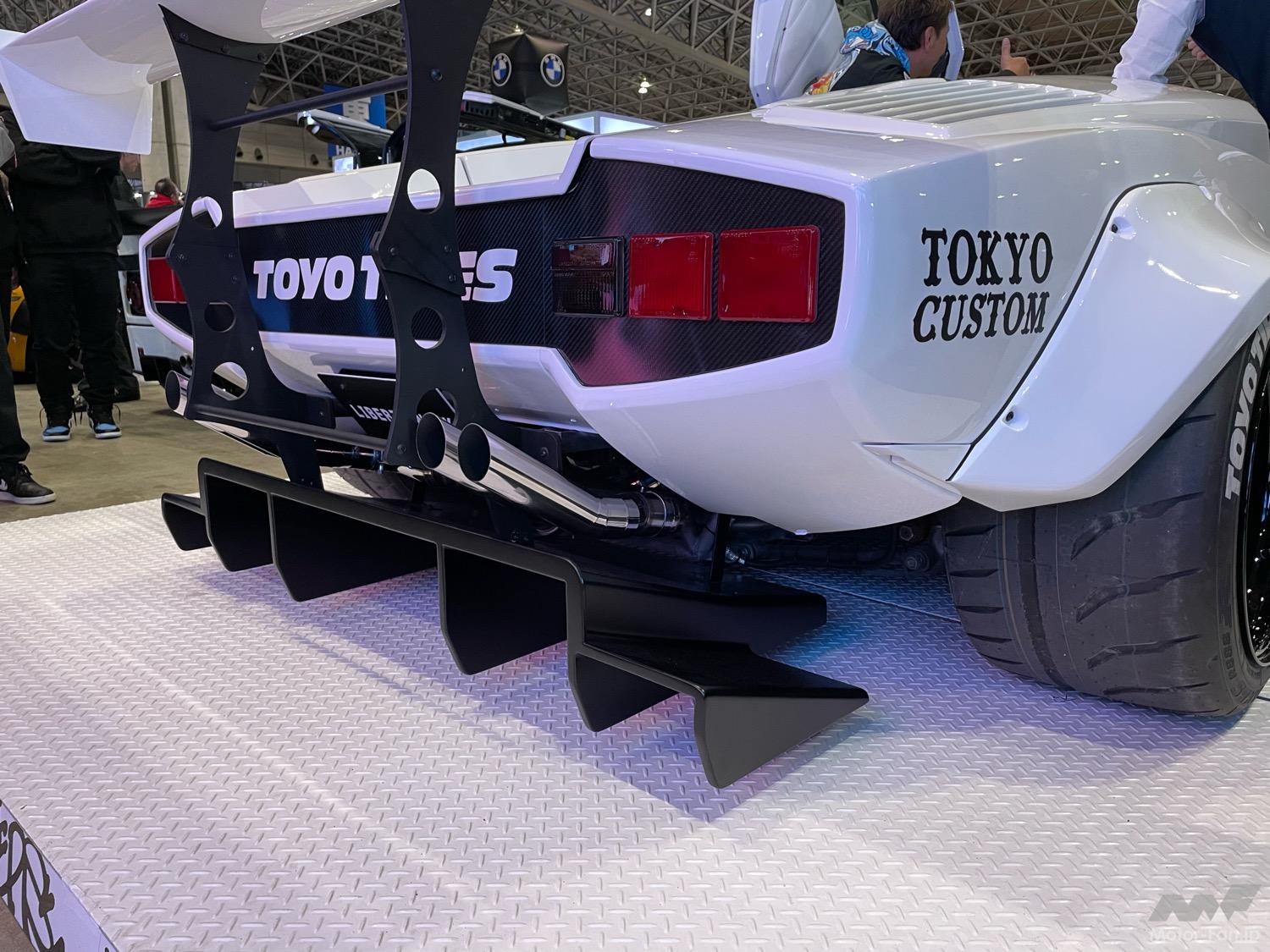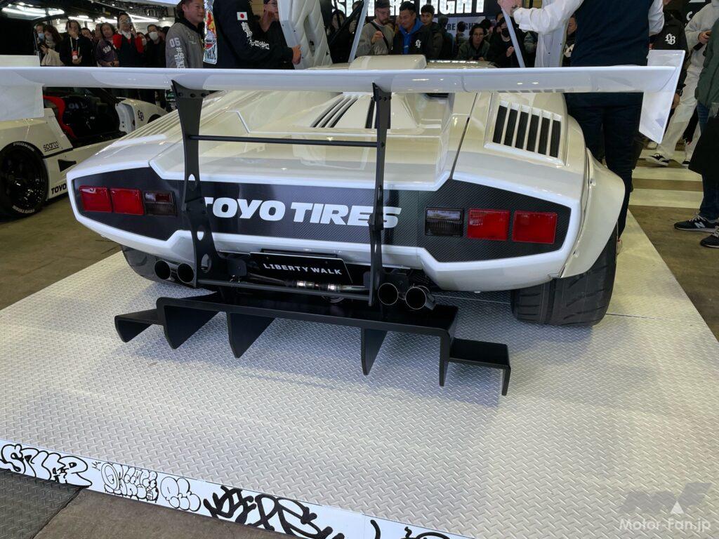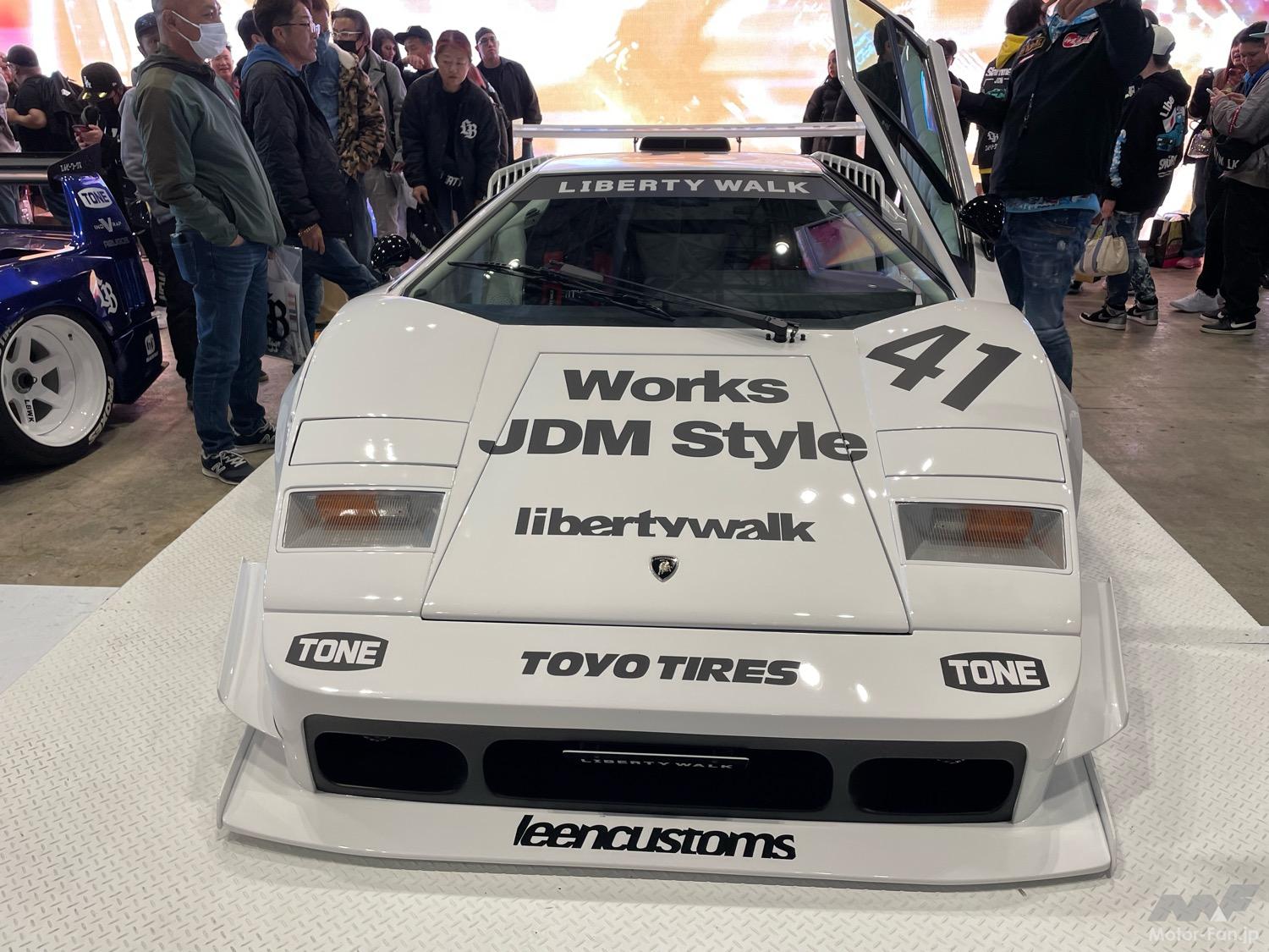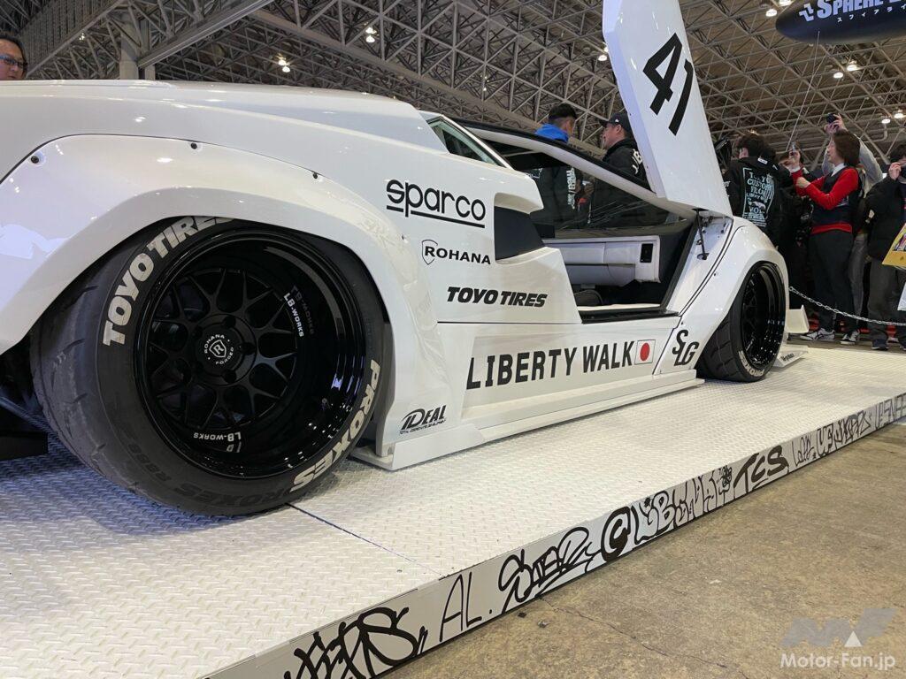 今回の東京オートサロンで初披露された車両は2台ある。1台目は「ランボルギーニ・カウンタック」。フェンダーをカットしてオリジナルデザインのボディーキットで仕上げるカスタム手法は、まさにリバティーウオーク流だ!