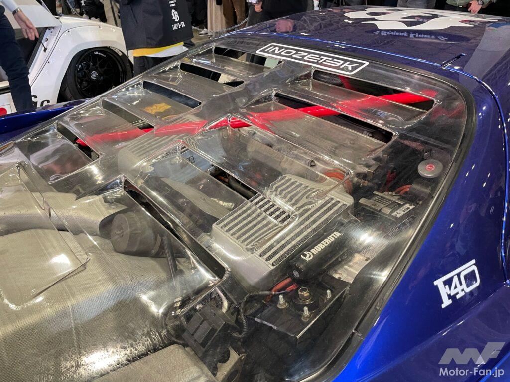 そして、もう1台の初公開車両は「マツダ・AZ-1」だ。フェラーリ・F40をイメージした外装にカスタム。軽自動車なのでサイズ感はコンパクトだが、気合十分なスタイルに仕上げられている。この車両は、同社が掲げている「未来を担う子供たちに夢を与える」というテーマに基づいて、プロジェクトに協力した子供達も車両製作の一部を手伝ったという。こちらのボディキットは226万6000円で販売中。