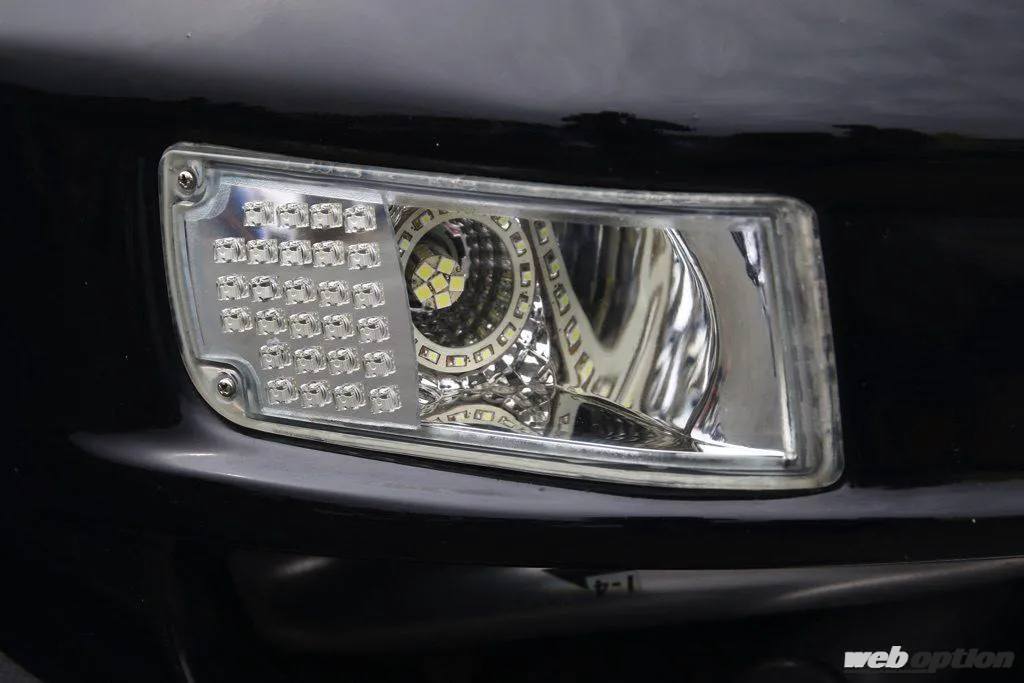 フォグランプやサイドマーカーも自分で制作したLEDユニットをセット。細かい部分まで全てLED化を完了しているため、ナイトランでは古さを感じさせないのも特徴だ。