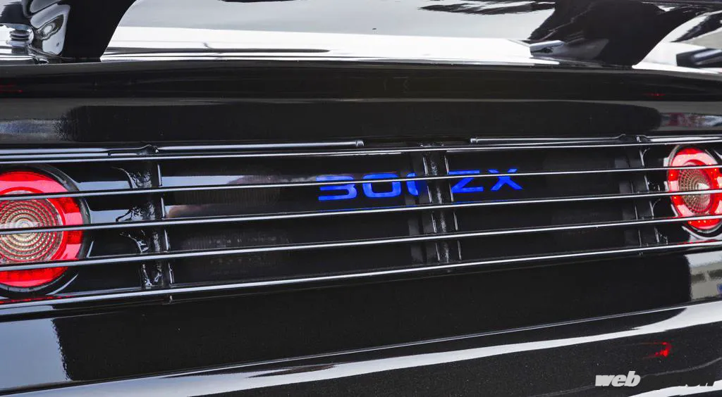 センターガーニッシュの300ZXロゴはスモール点灯で青に、ブレーキ連動で赤に点灯するよう細工。さらにバックランプ部分には計160発のLEDを投入してバックフォグ化。フラッシュユニットによってストロボ点滅も可能となっている。