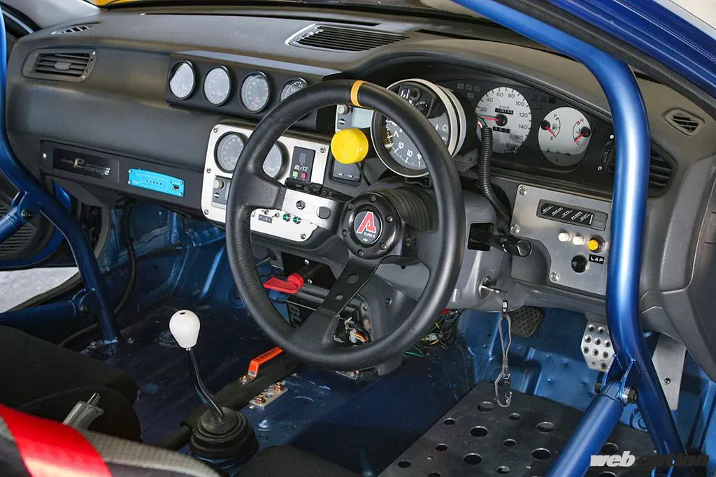 完全サーキット仕様ということもあり、エアコンやオーディオ、さらにパワステも取り外している。ロールケージの装着やターボ化に伴う重量増がありながらも、車重は1010kgまで絞り込まれている。