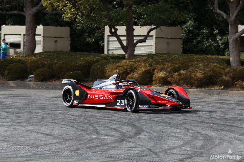 イベントでまず走行したのは、フォーミュラEのシーズン8(2021~22年)まで参戦していた日産の23号車。ステアリングを握ったのは今シーズンもスーパーGTシリーズ GT500クラスに参戦し、かつてフォーミュラEのリザーブドライバーを務めた経験を持つ高星明誠だ。