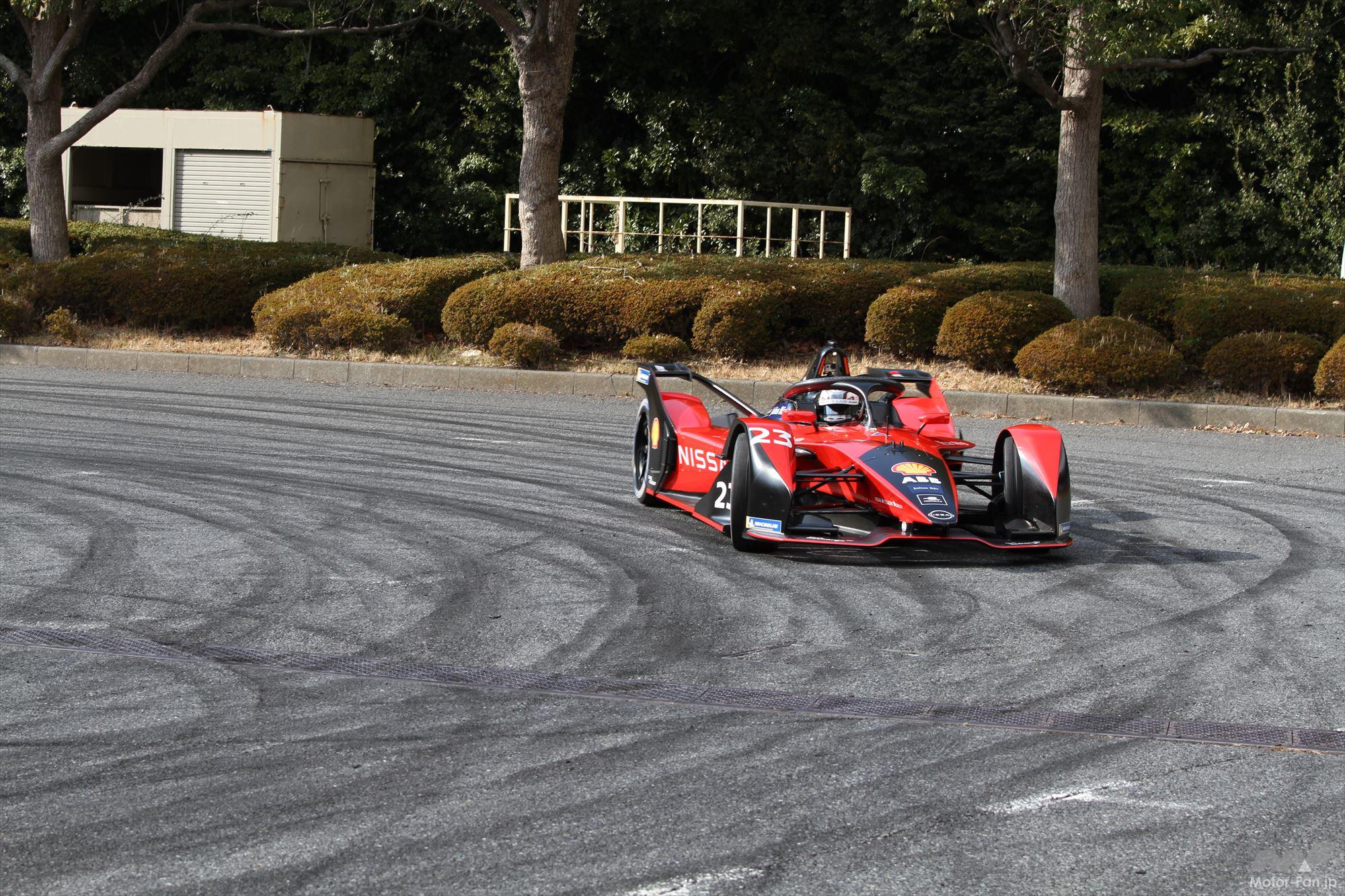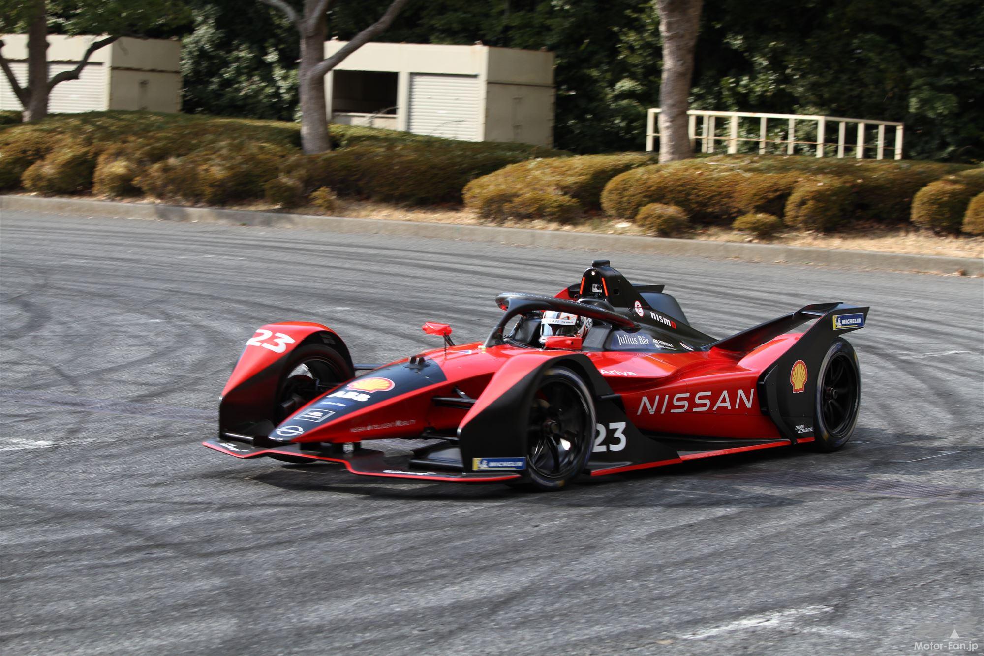イベントでまず走行したのは、フォーミュラEのシーズン8(2021~22年)まで参戦していた日産の23号車。ステアリングを握ったのは今シーズンもスーパーGTシリーズ GT500クラスに参戦し、かつてフォーミュラEのリザーブドライバーを務めた経験を持つ高星明誠だ。