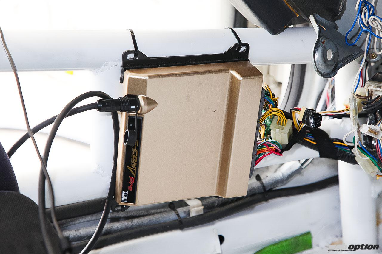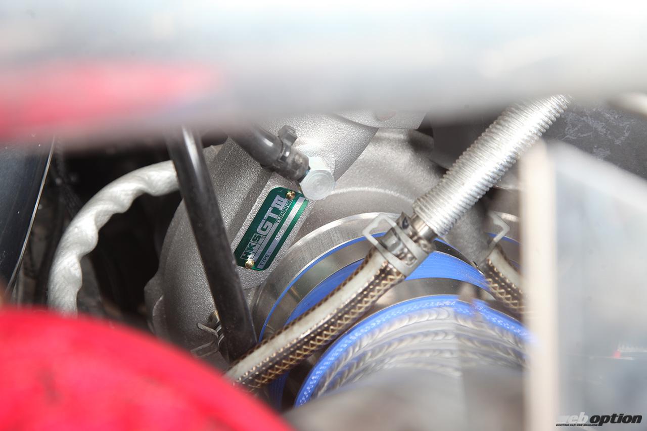また、安定したパワーを引き出すため、ドリフト仕様ではどうしても厳しくなりがちな冷却系の容量アップも抜かりなく実施。ラジエター交換とエンジンオイルクーラー追加、前置きインタークーラーの導入が行なわれる。同時に、ECUセッティングも安全マージンを多めに取ることで耐久性を高めつつ、徹底的にブローを回避する。